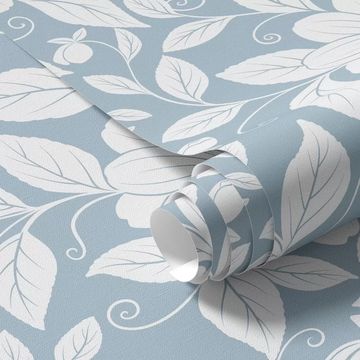 Tapet Vit blomsterkontur på en pastellblå bakgrund Nr. a00452