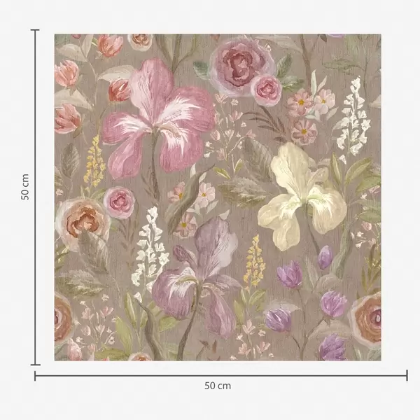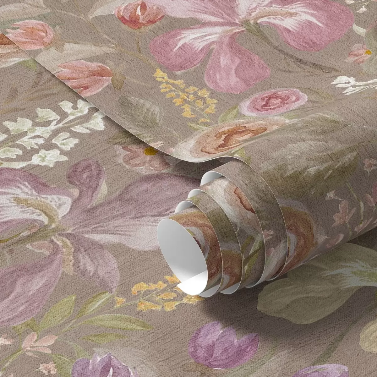 Tapet Vintage rosa irisblommönster på beige texturerad bakgrund Nr. a00457