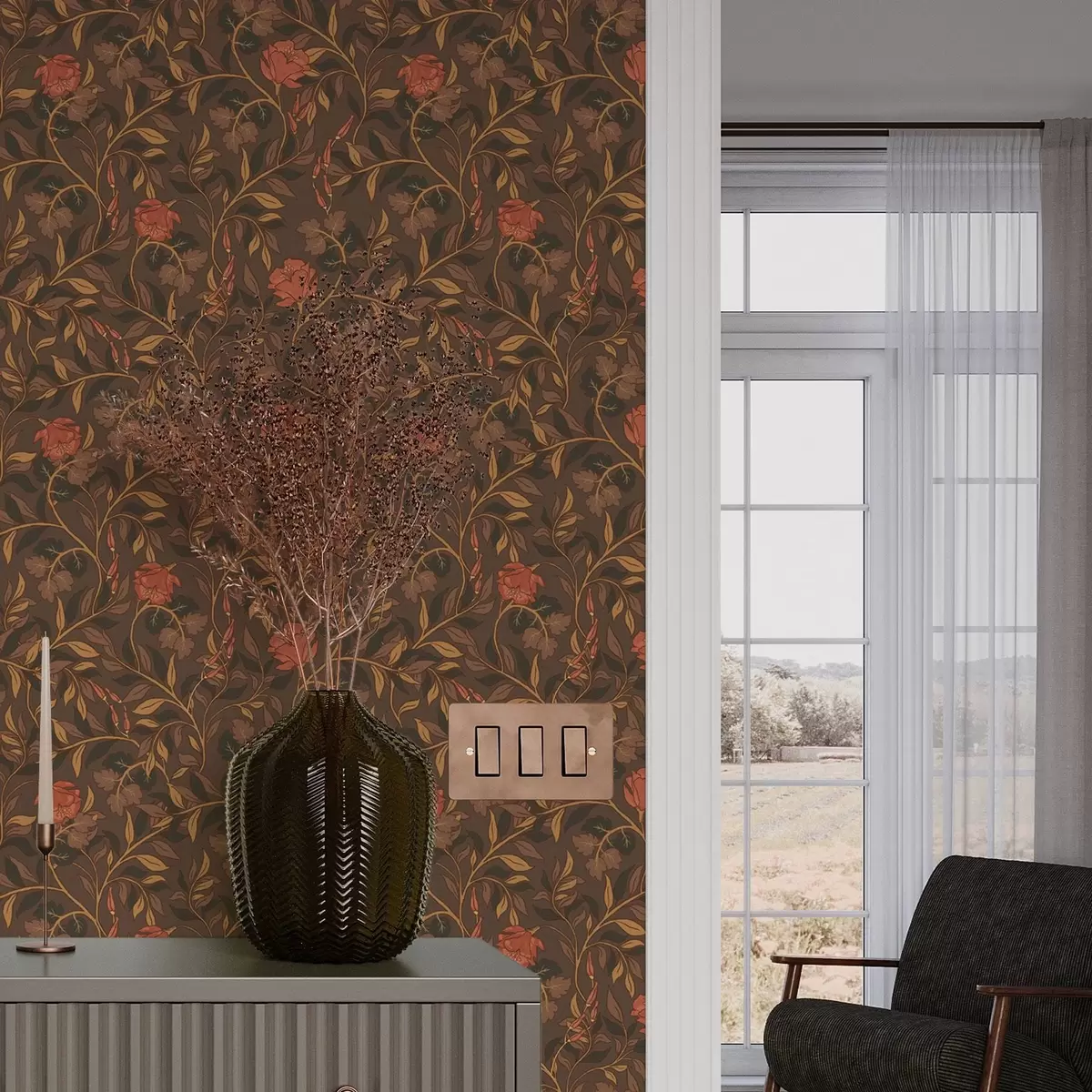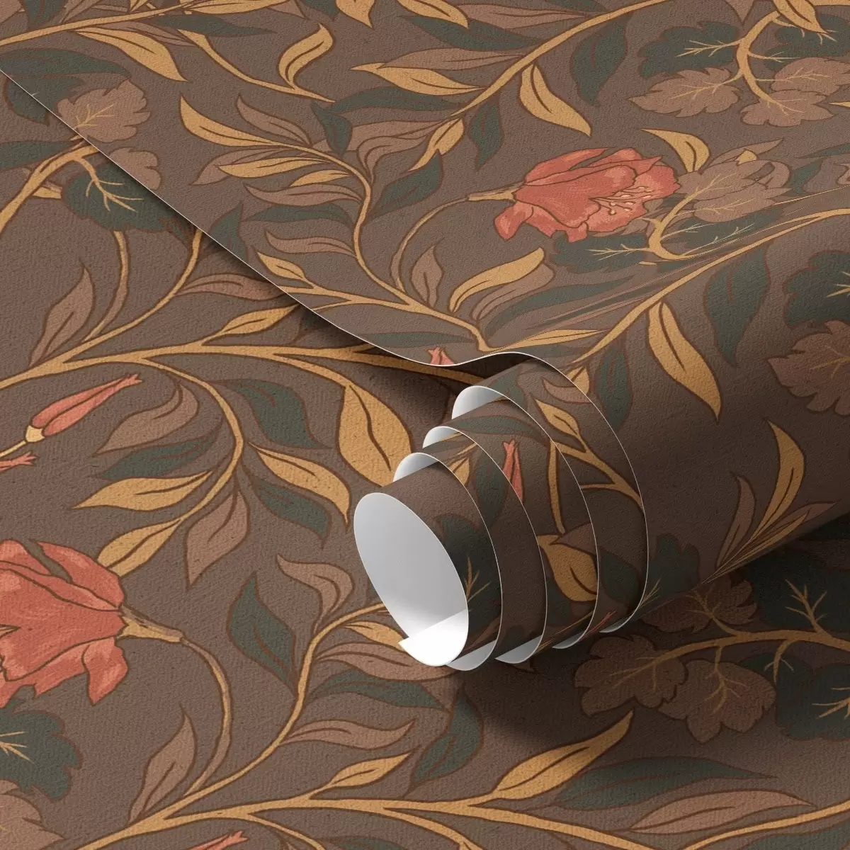 Tapet Blommande terrakottagrenar på en brun bakgrund Nr. a00460