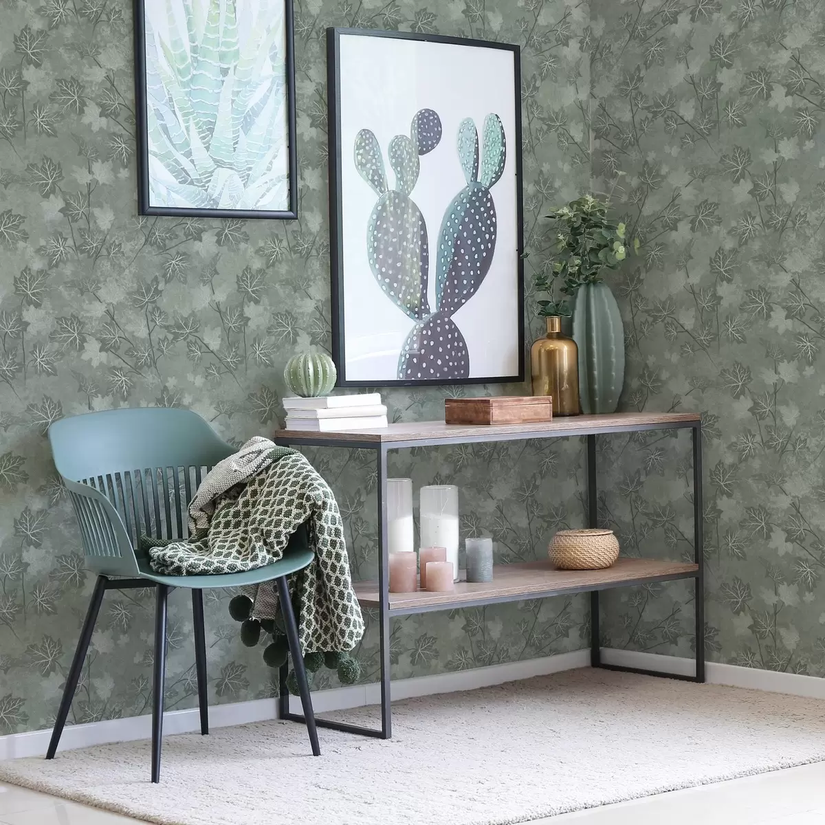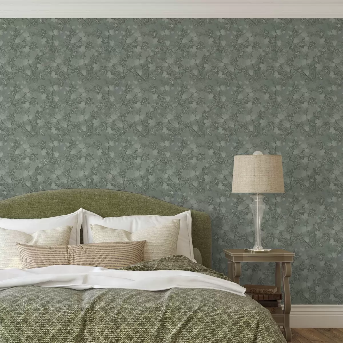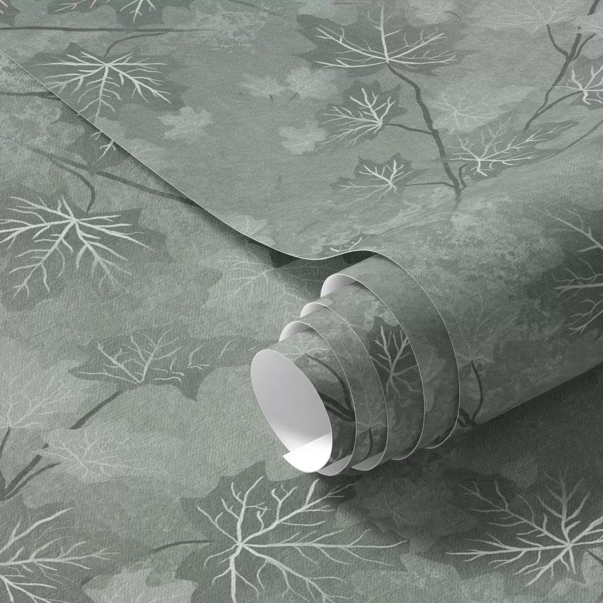 Tapet Matt lönnlöv i mjuka gröna toner Nr. a00464