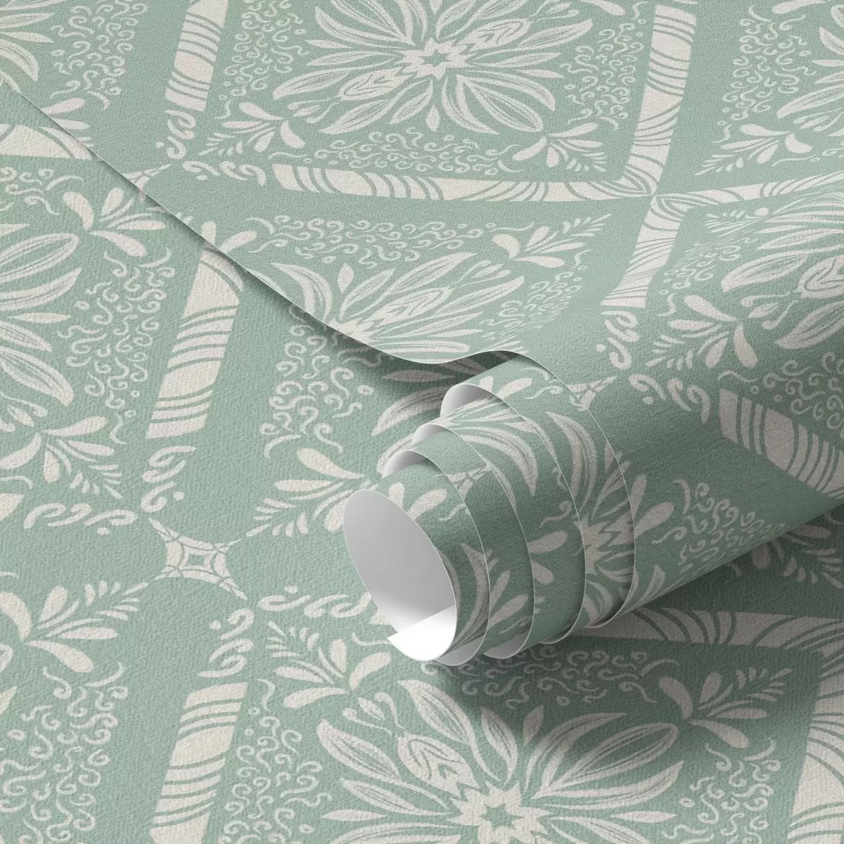 Tapet Turkos och beige geometriskt mönster med lockar Nr. a00466