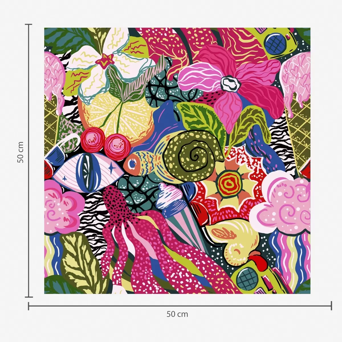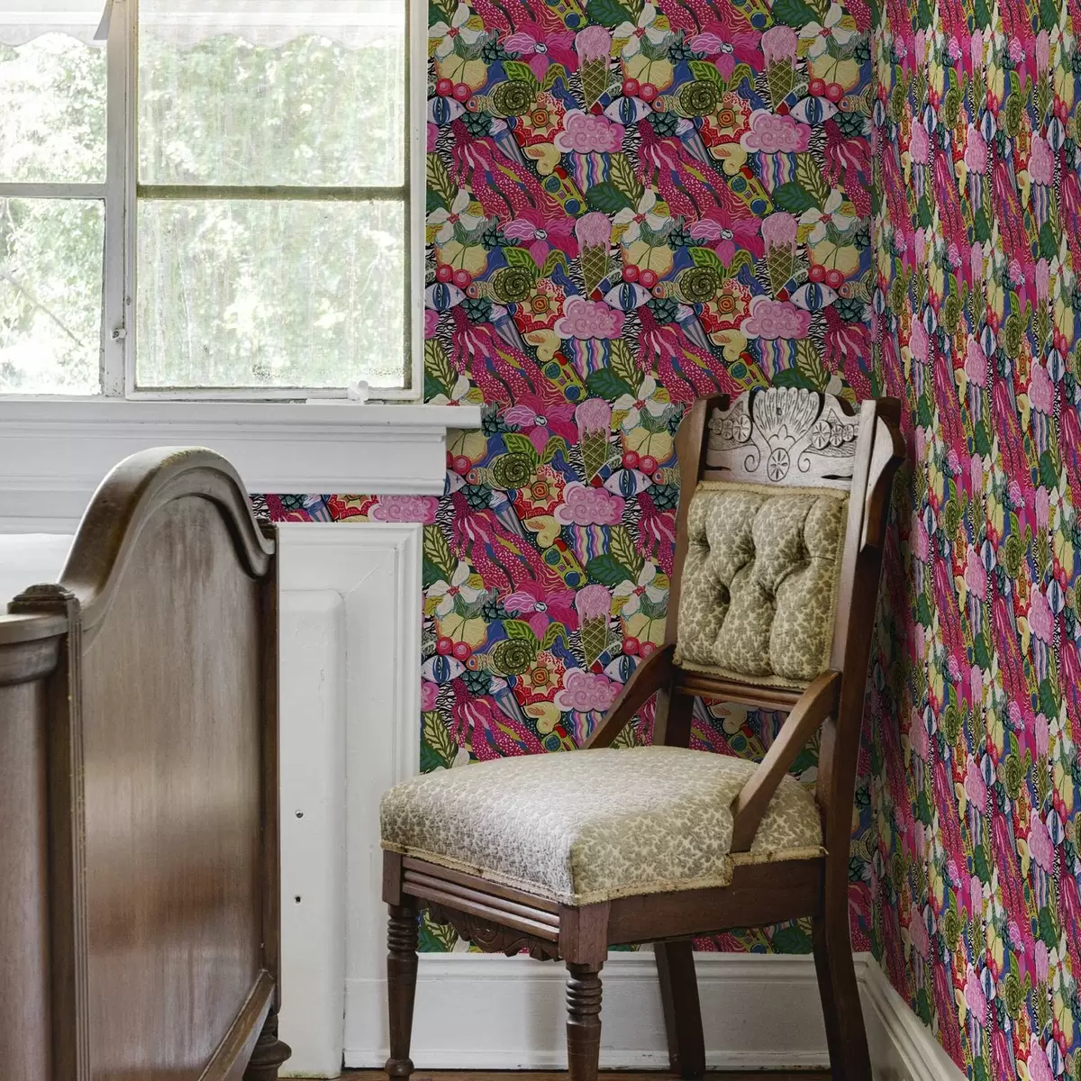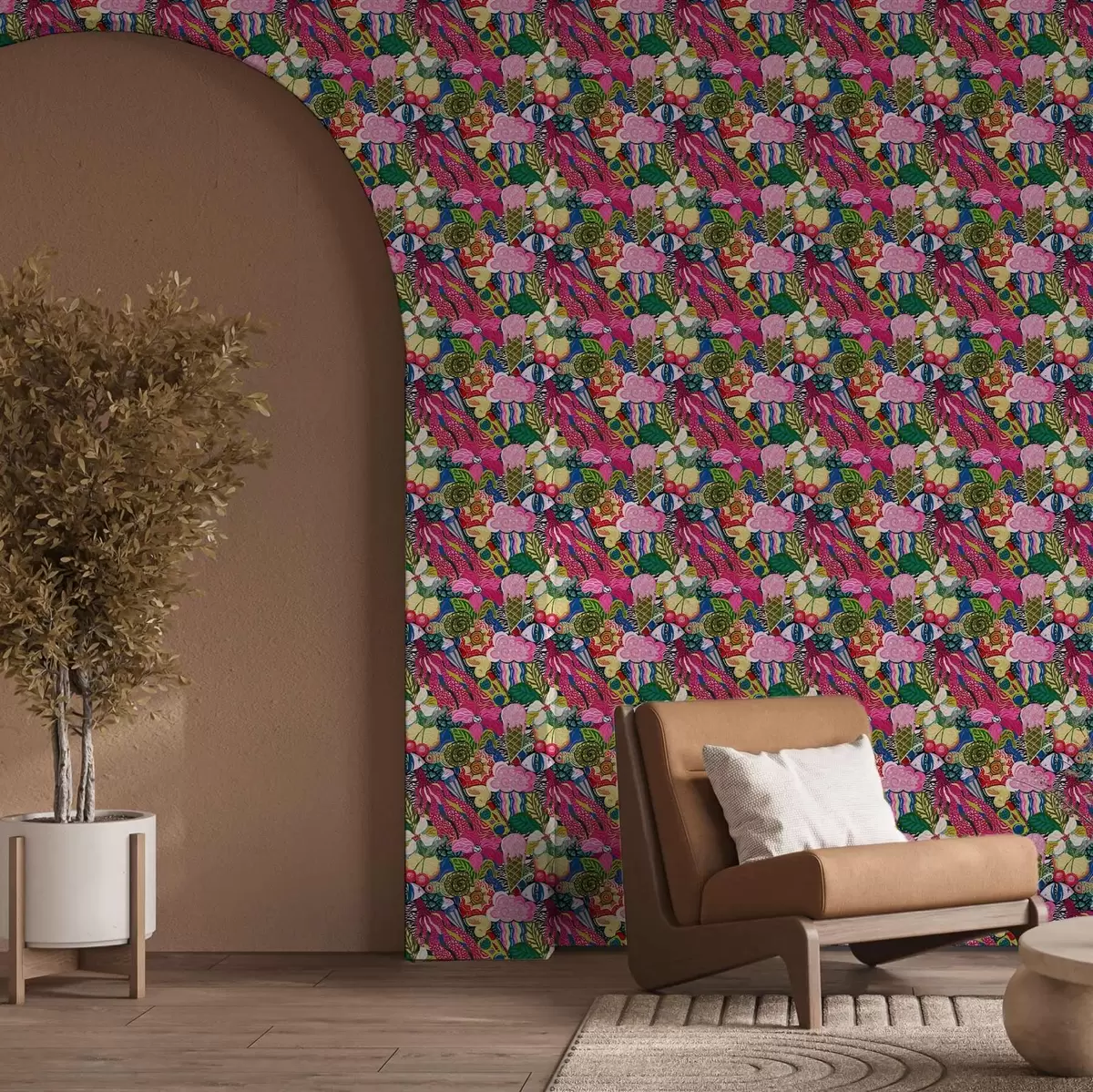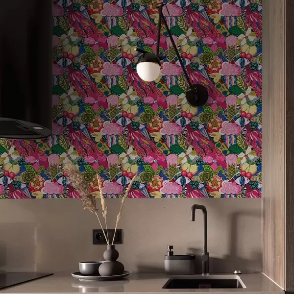 Tapet Abstrakt popkonst med blommor, bär och mönster Nr. a00471