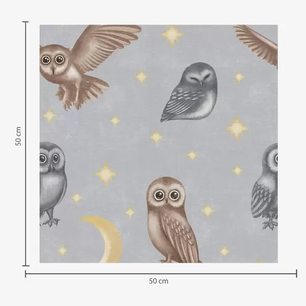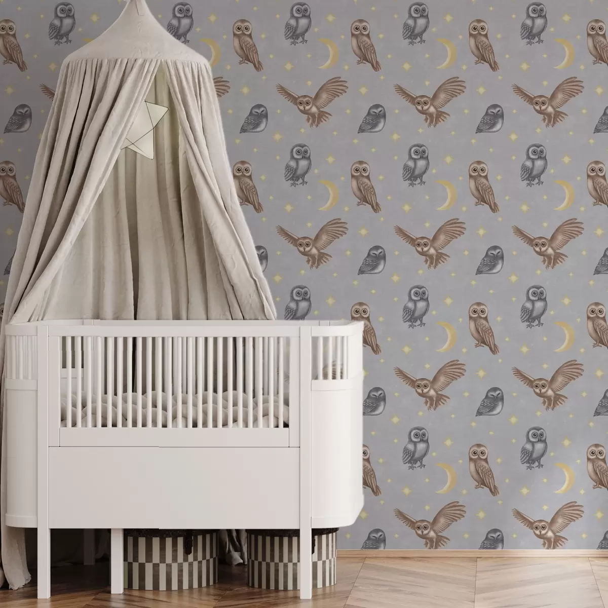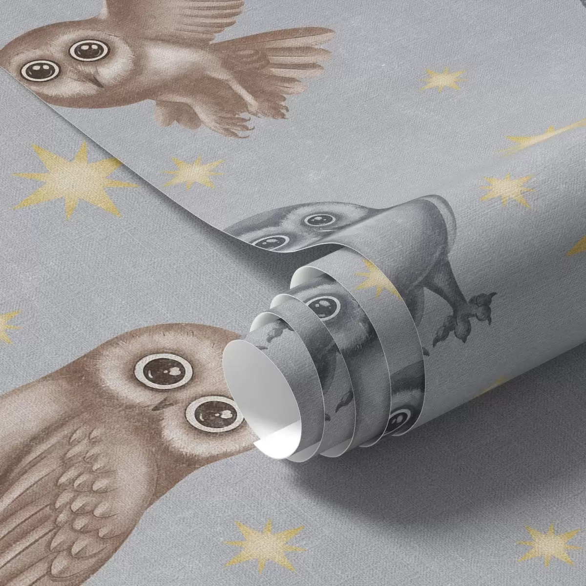 Tapet Ugglor och stjärnor på en grå natthimmelbakgrund Nr. a00475
