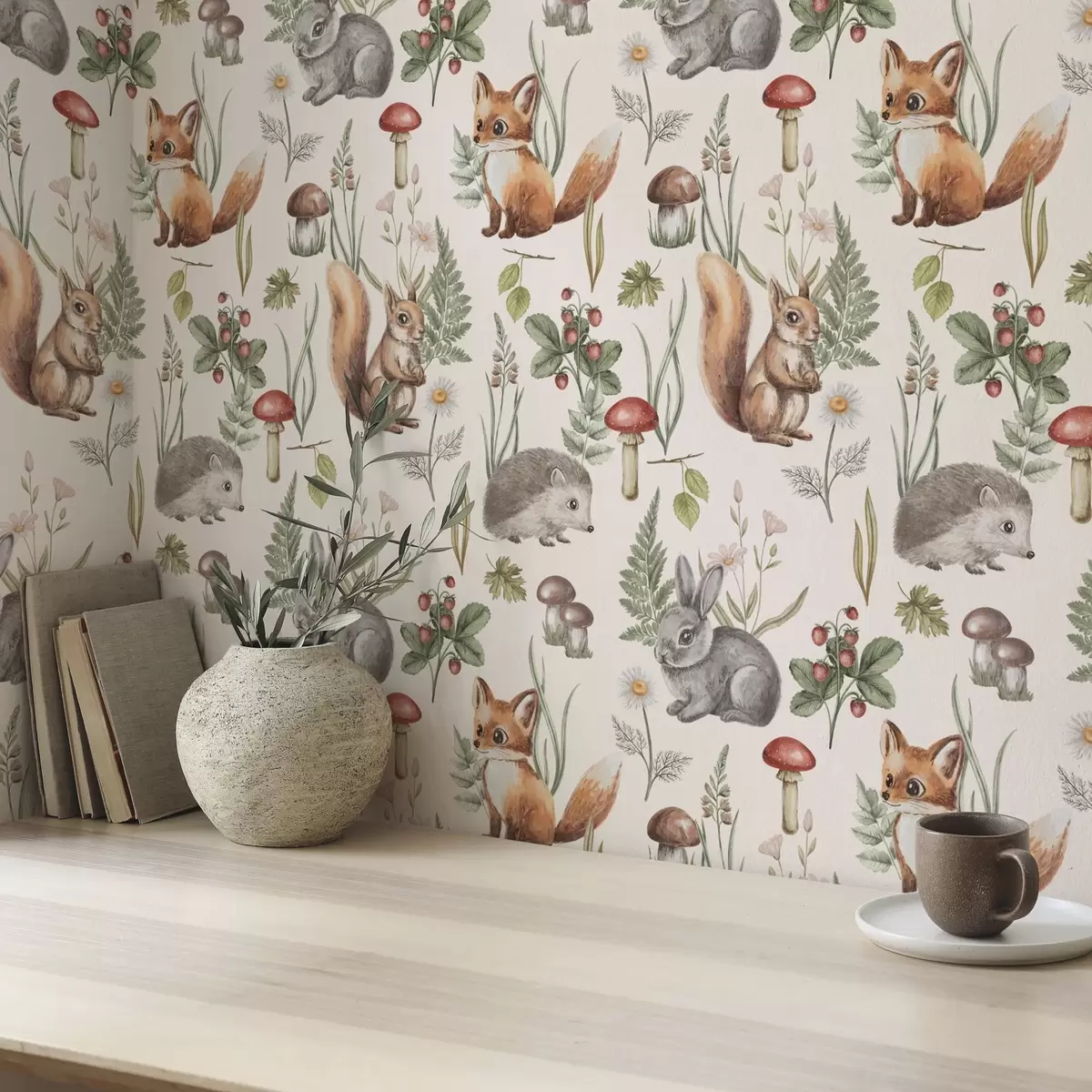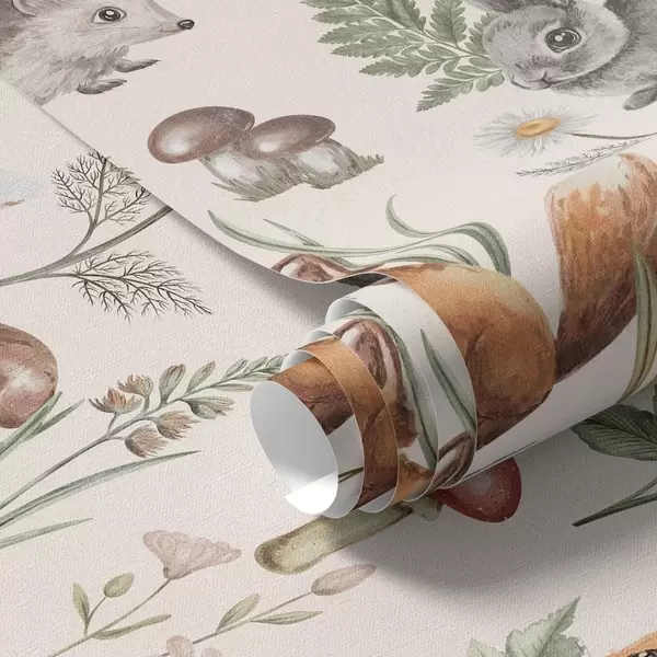 Tapet Skogens djur, svampar och växter i sagostil Nr. a00477