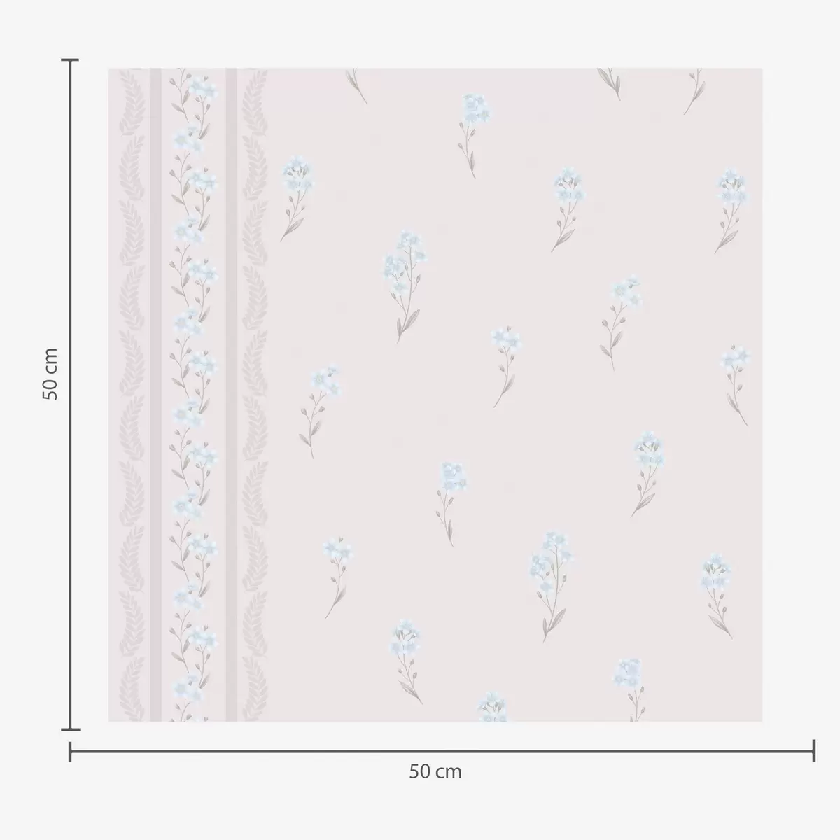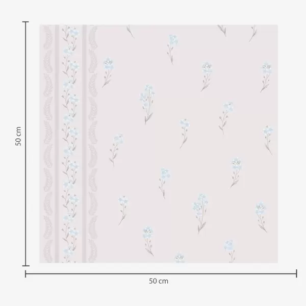 Tapet Rosa bakgrund med skira blå blommor och bård Nr. a00484