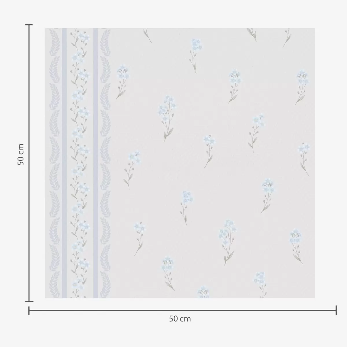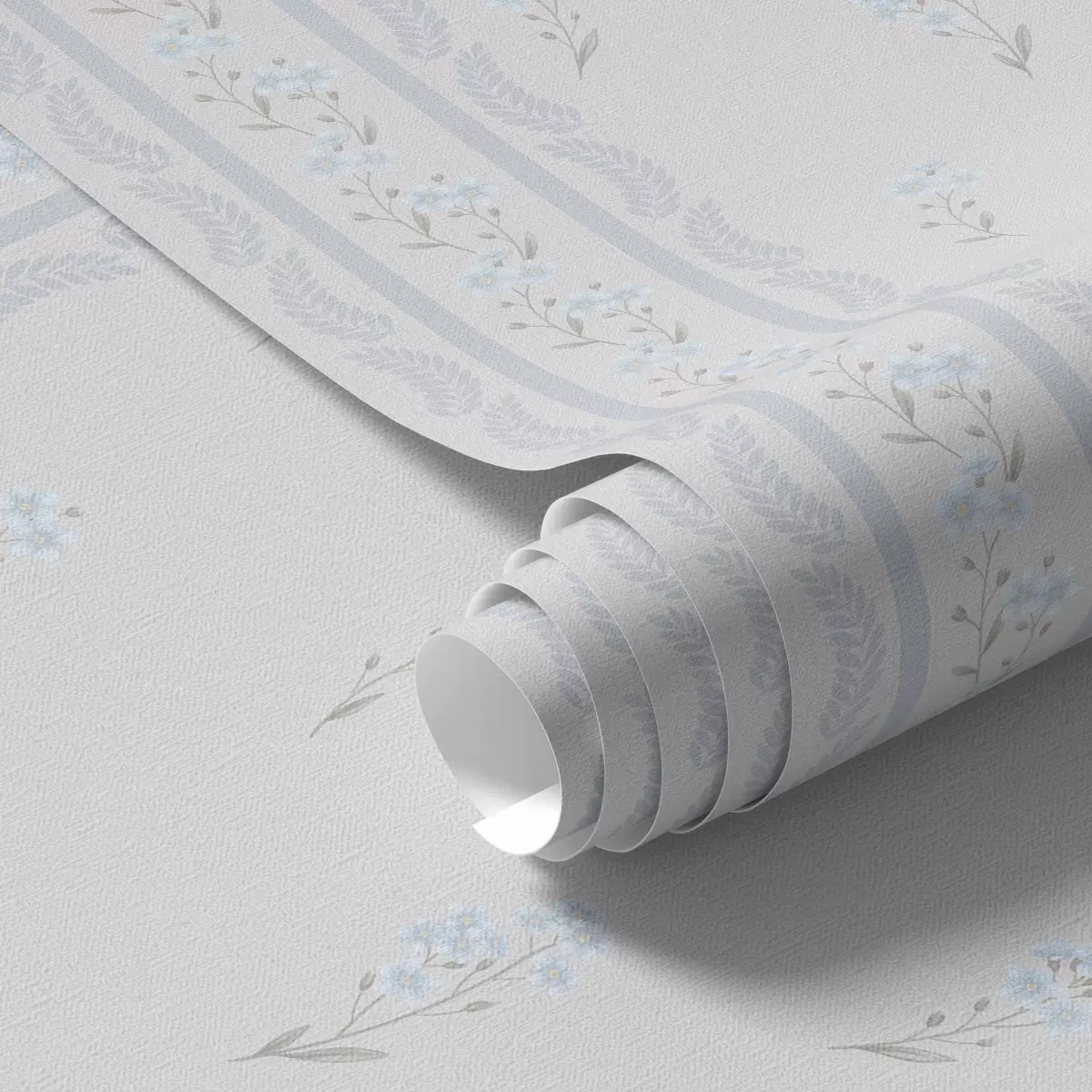 Tapet Vit bakgrund med blå blommor och dekorativa ränder Nr. a00484v1