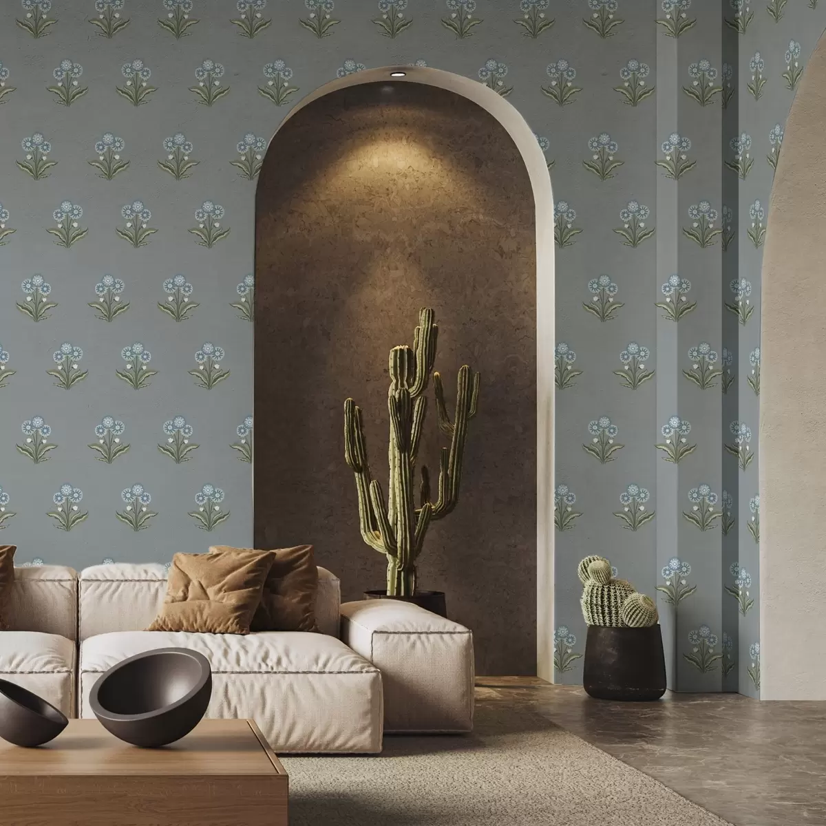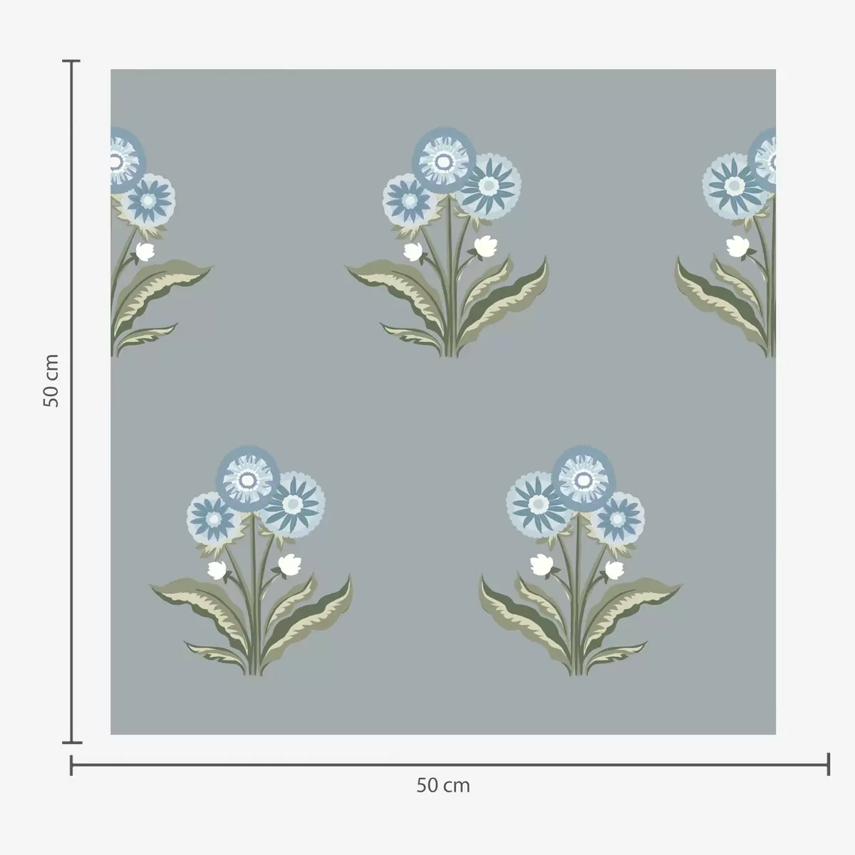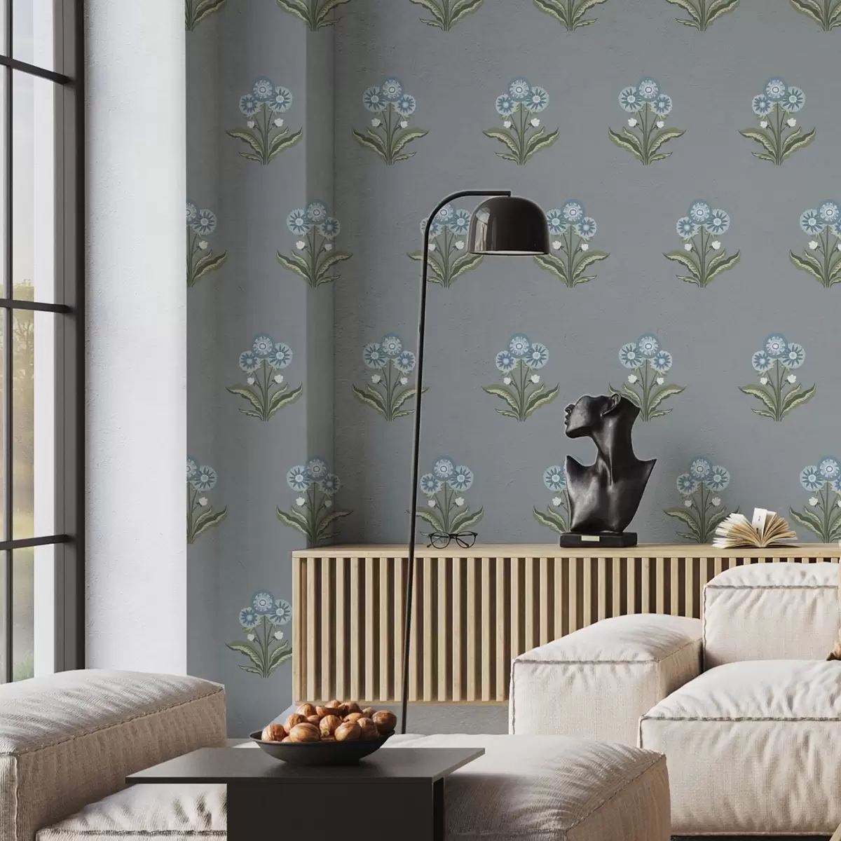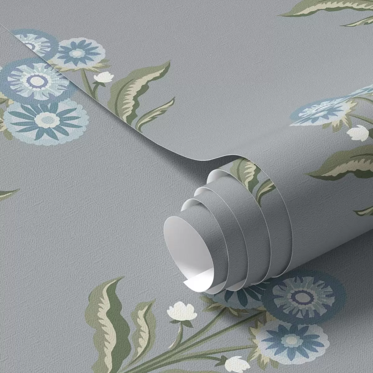 Tapet Stiliserade blommor på gråblå bakgrund, sval färgskala Nr. a00494v1