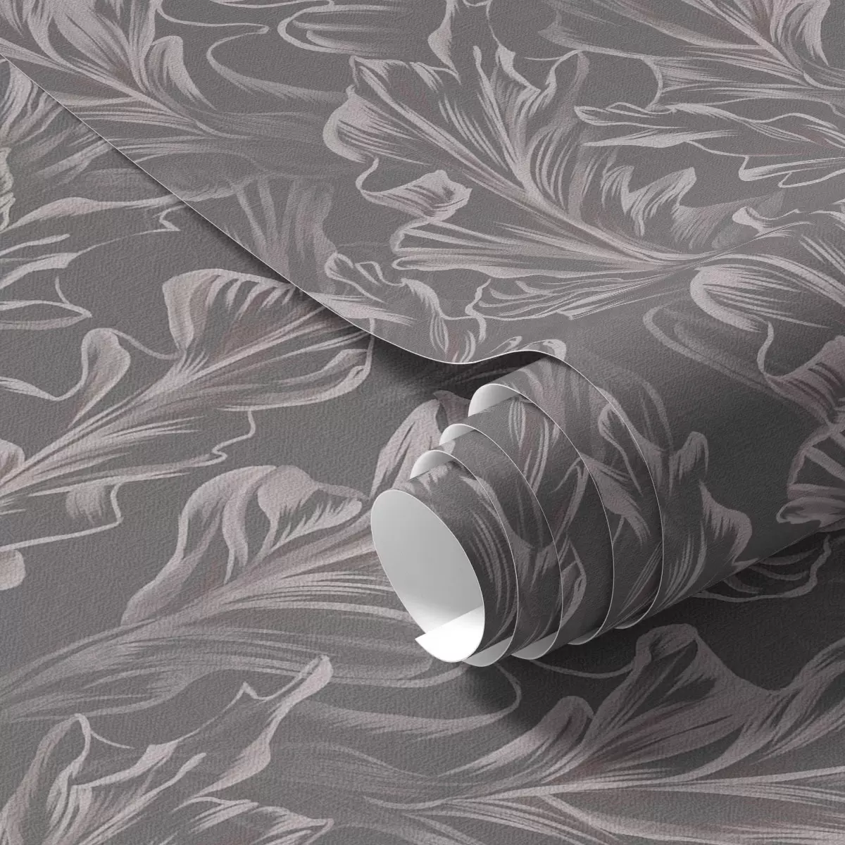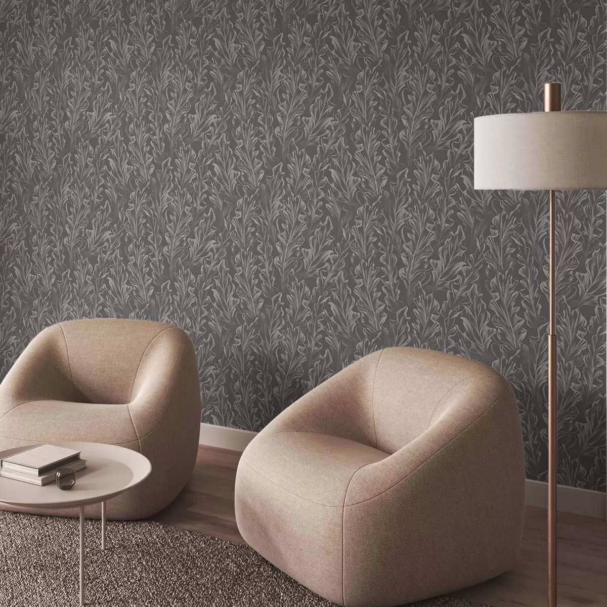 Tapet Flödande bladvågor på grafitbakgrund, hög kontrast Nr. a00495v1