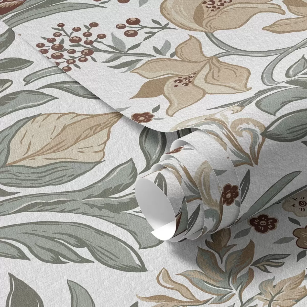 Tapet Dekorativa liljor och en fjäril på vit bakgrund Nr. a00500v1