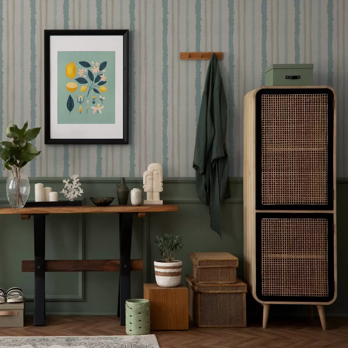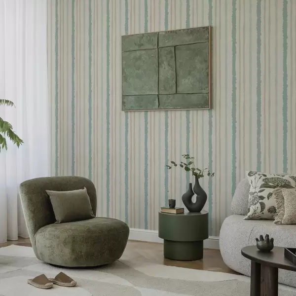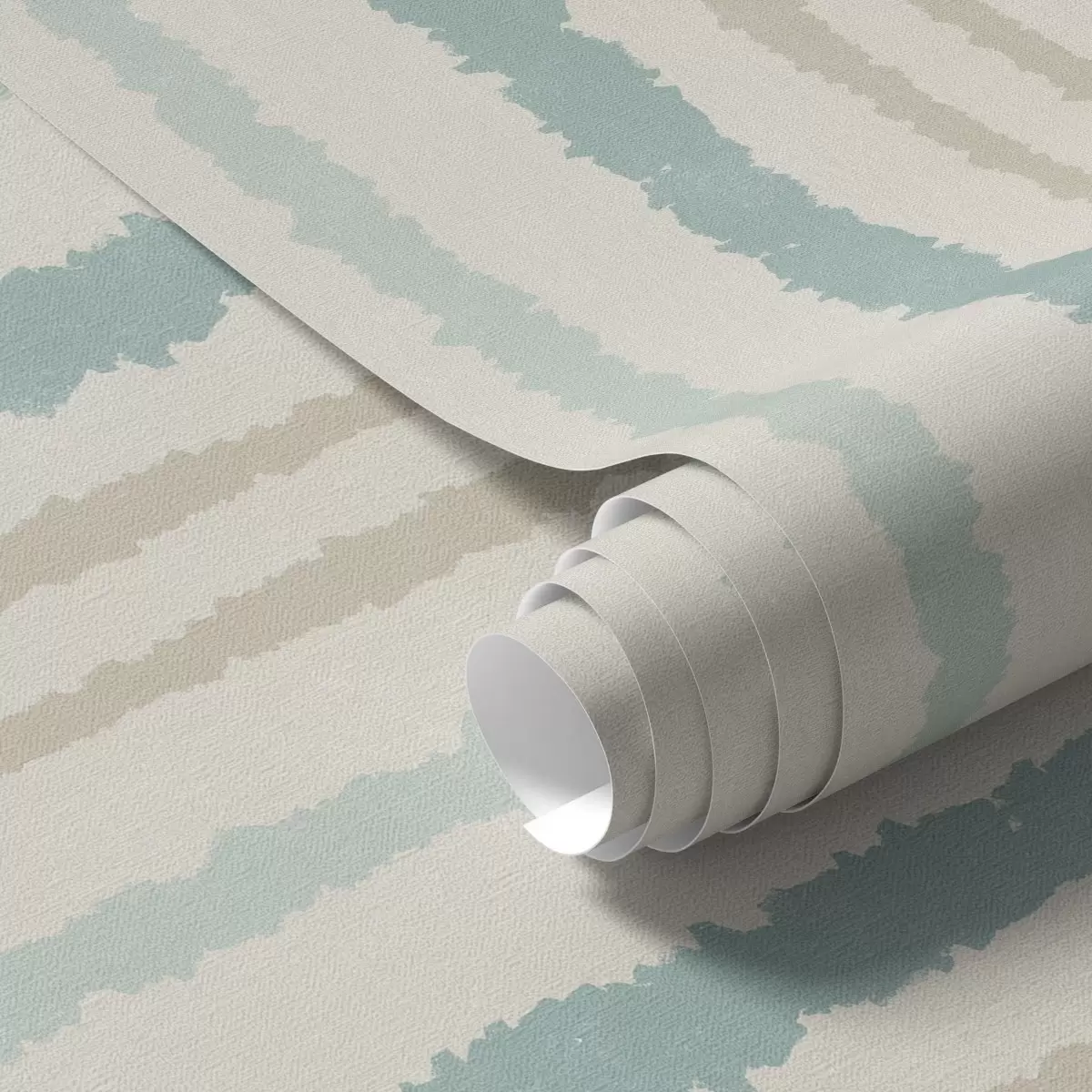 Tapet Turkos-beige ränder med handmålad effekt Nr. a00510v1