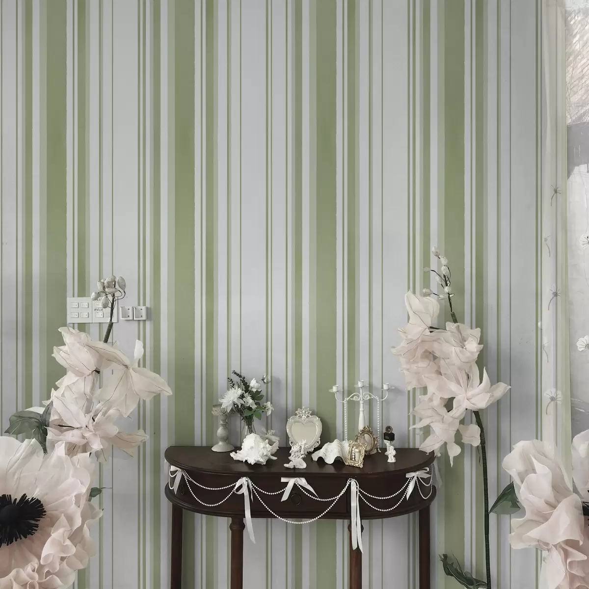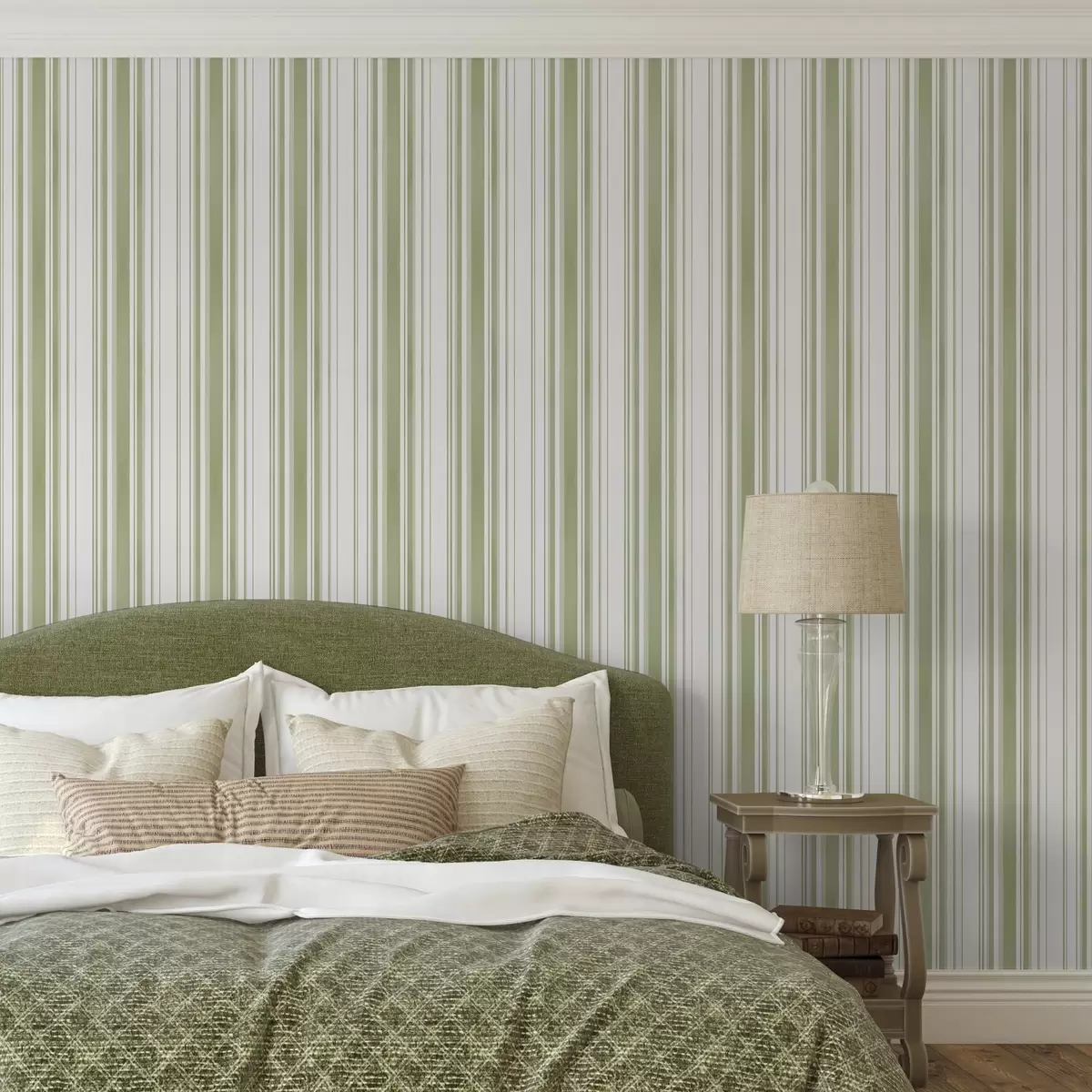Tapet Gröna ränder av varierande bredd på en ljus bakgrund Nr. a00523