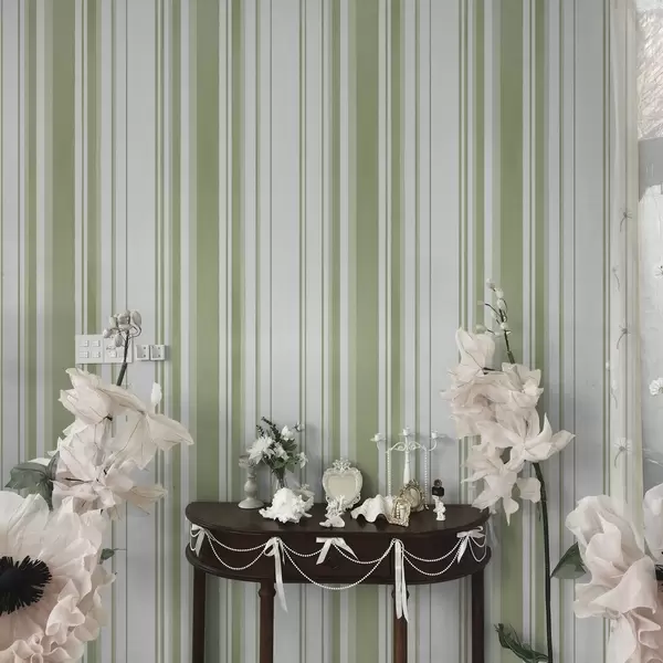 Tapet Gröna ränder av varierande bredd på en ljus bakgrund Nr. a00523