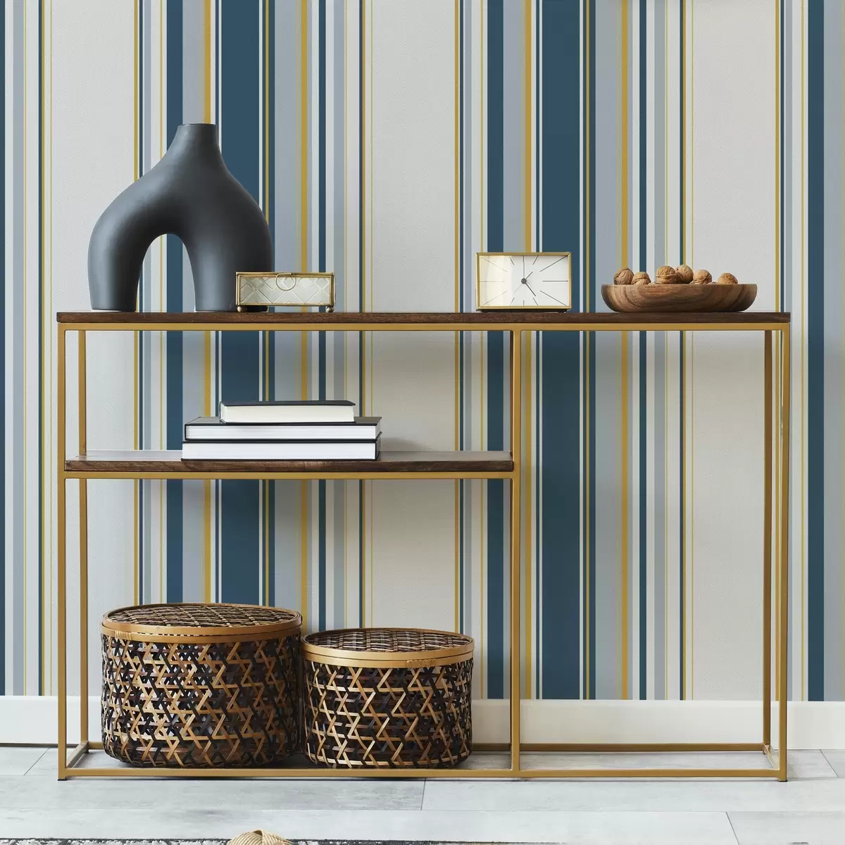 Tapet Tätt mönster av blå och gula vertikala ränder Nr. a00524