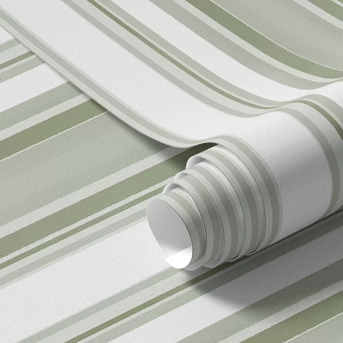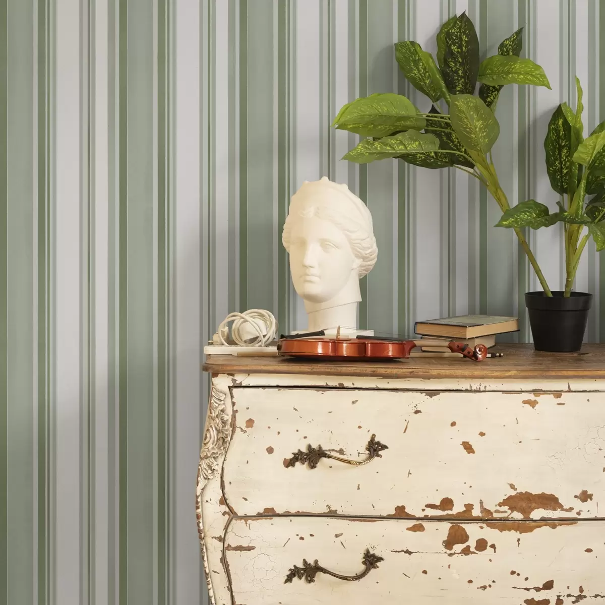 Tapet Gröna ränder med vita intervaller och tunna linjer Nr. a00526
