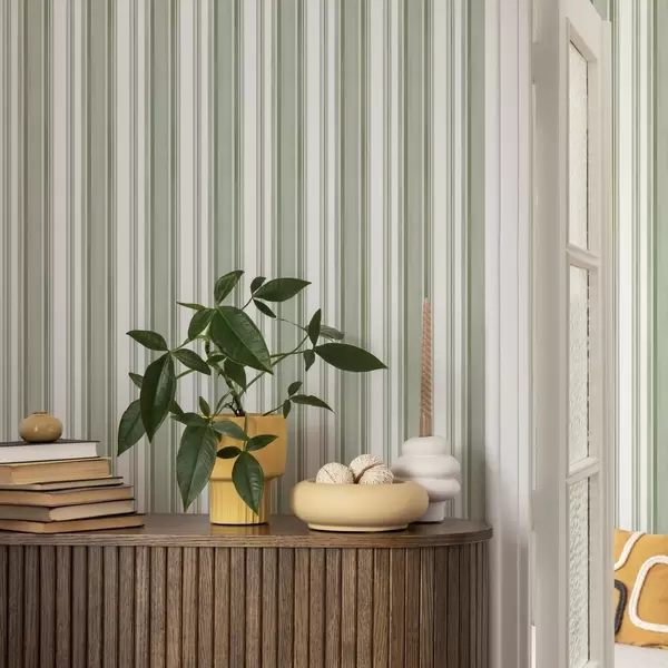 Tapet Gröna ränder med vita intervaller och tunna linjer Nr. a00526