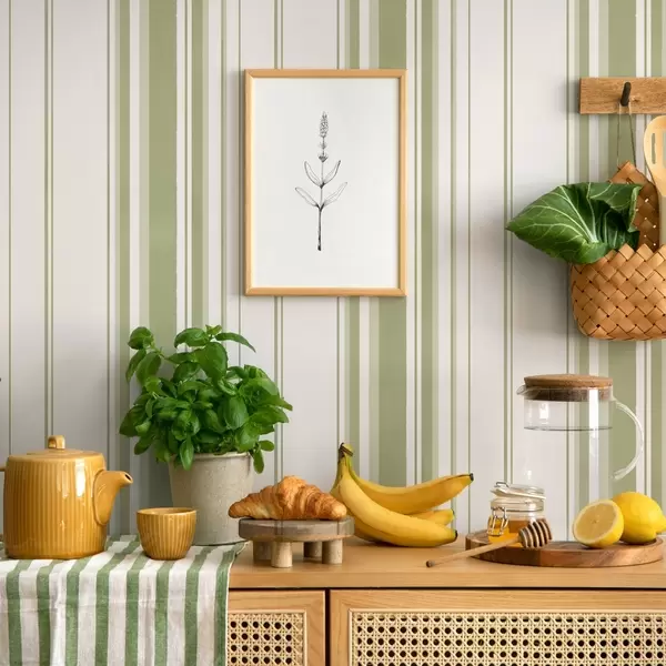 Tapet Gröna vertikala ränder av varierande bredd Nr. a00565