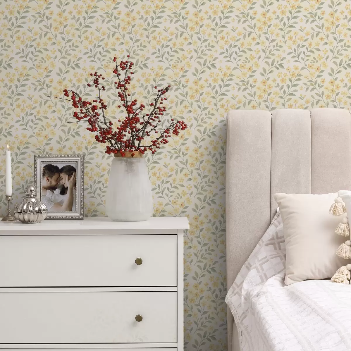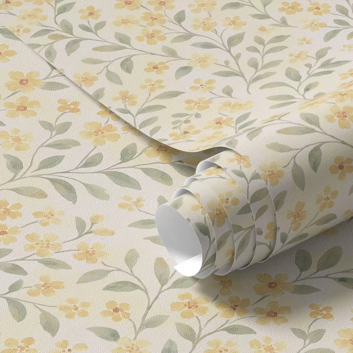 Tapet Akvarellgula blommor på ljus bakgrund Nr. a00570