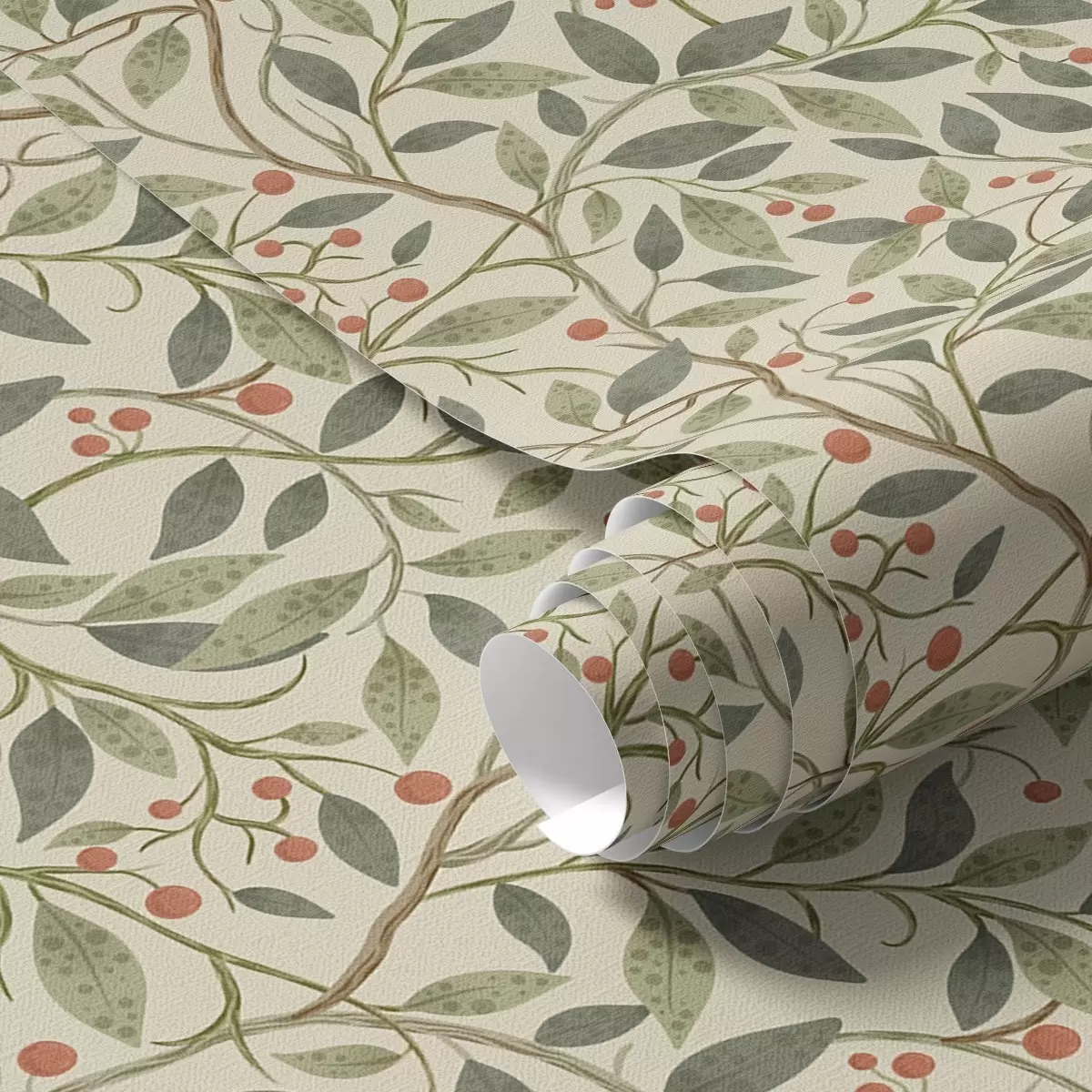 Tapet Olivkvistar med bär på en varm ljus bakgrund Nr. a00573