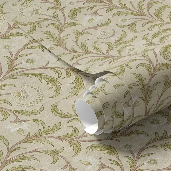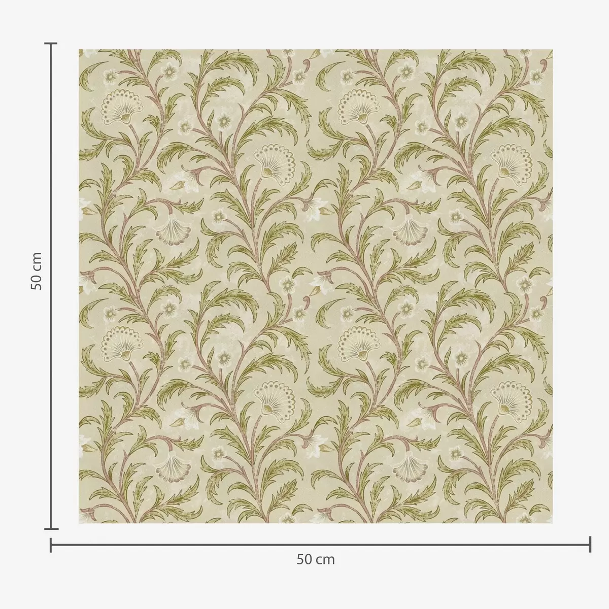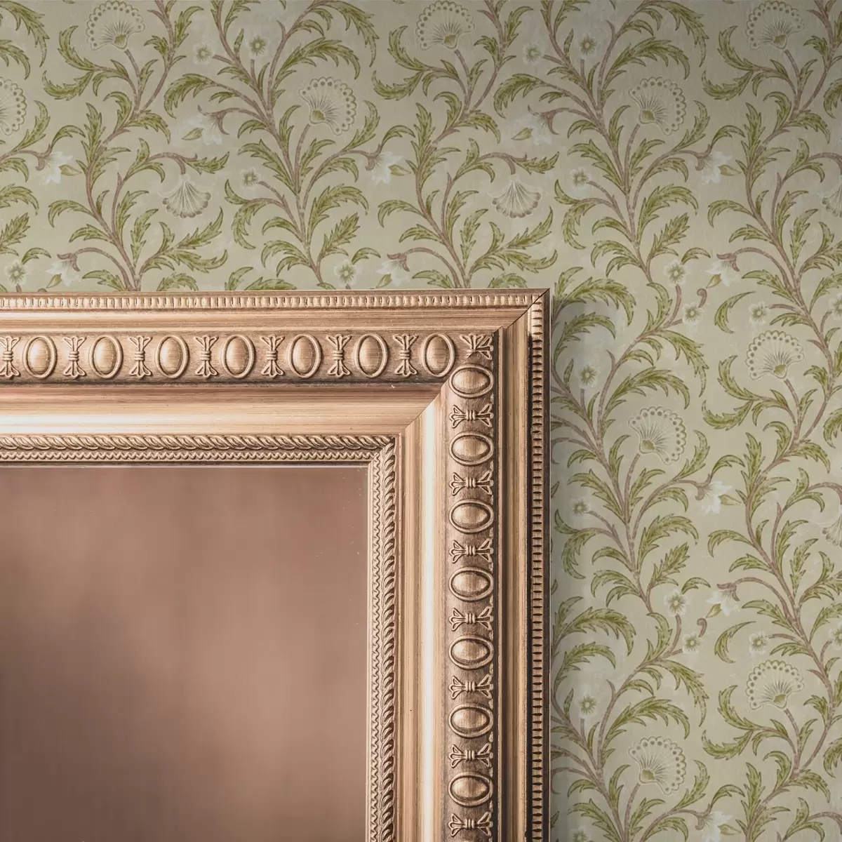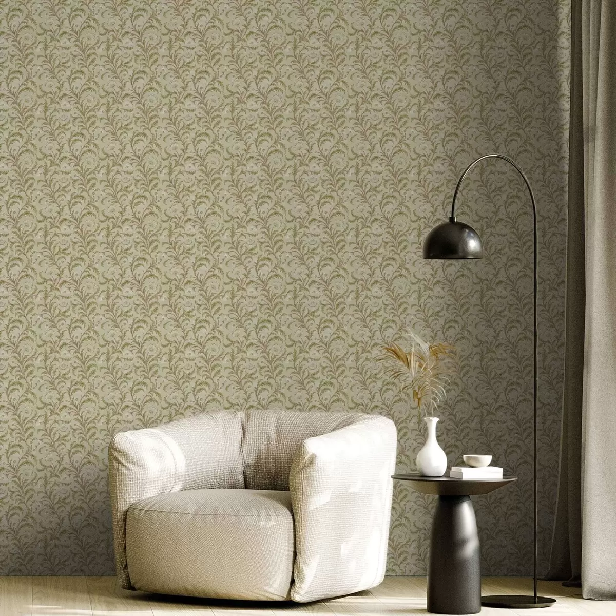 Tapet Vintage ornament med snirklar och blommor, beige och olivgrön Nr. a00574