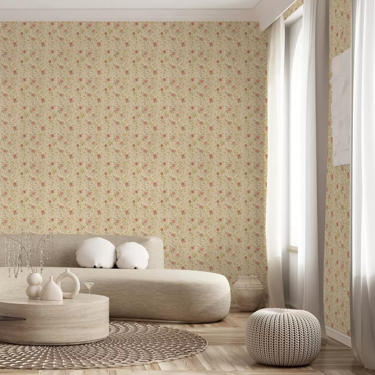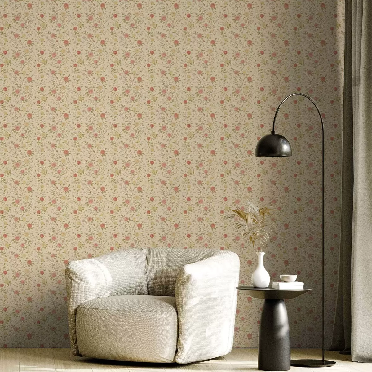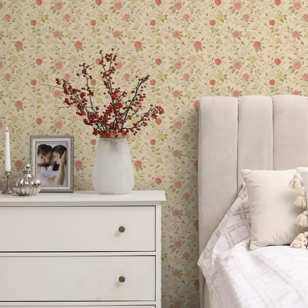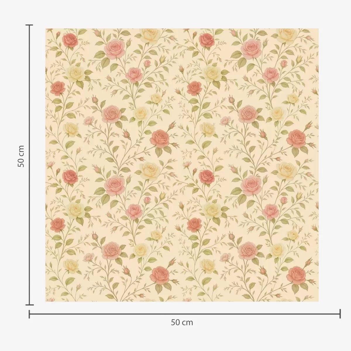 Tapet Vintage-rosor i persika och gult på en krämfärgad bakgrund Nr. a00577