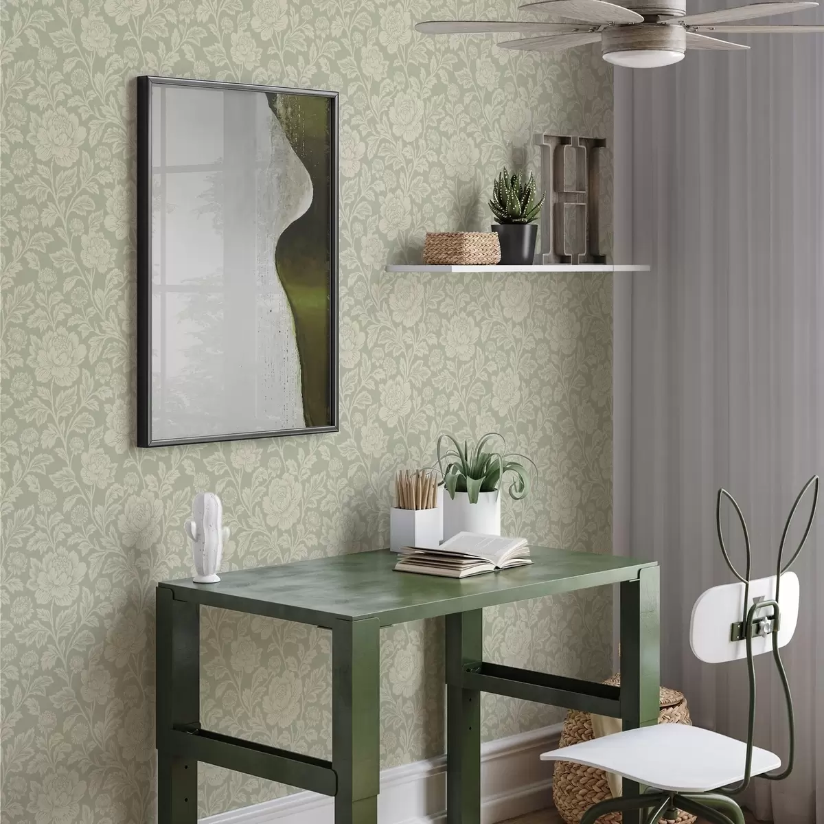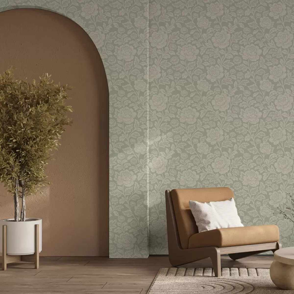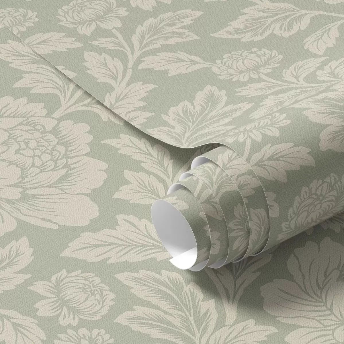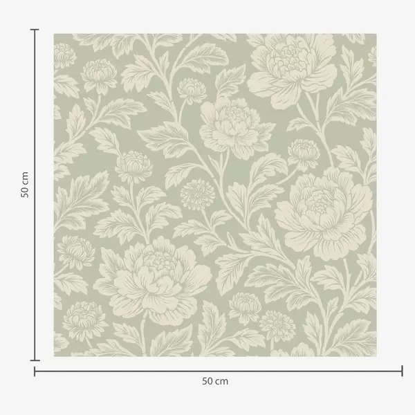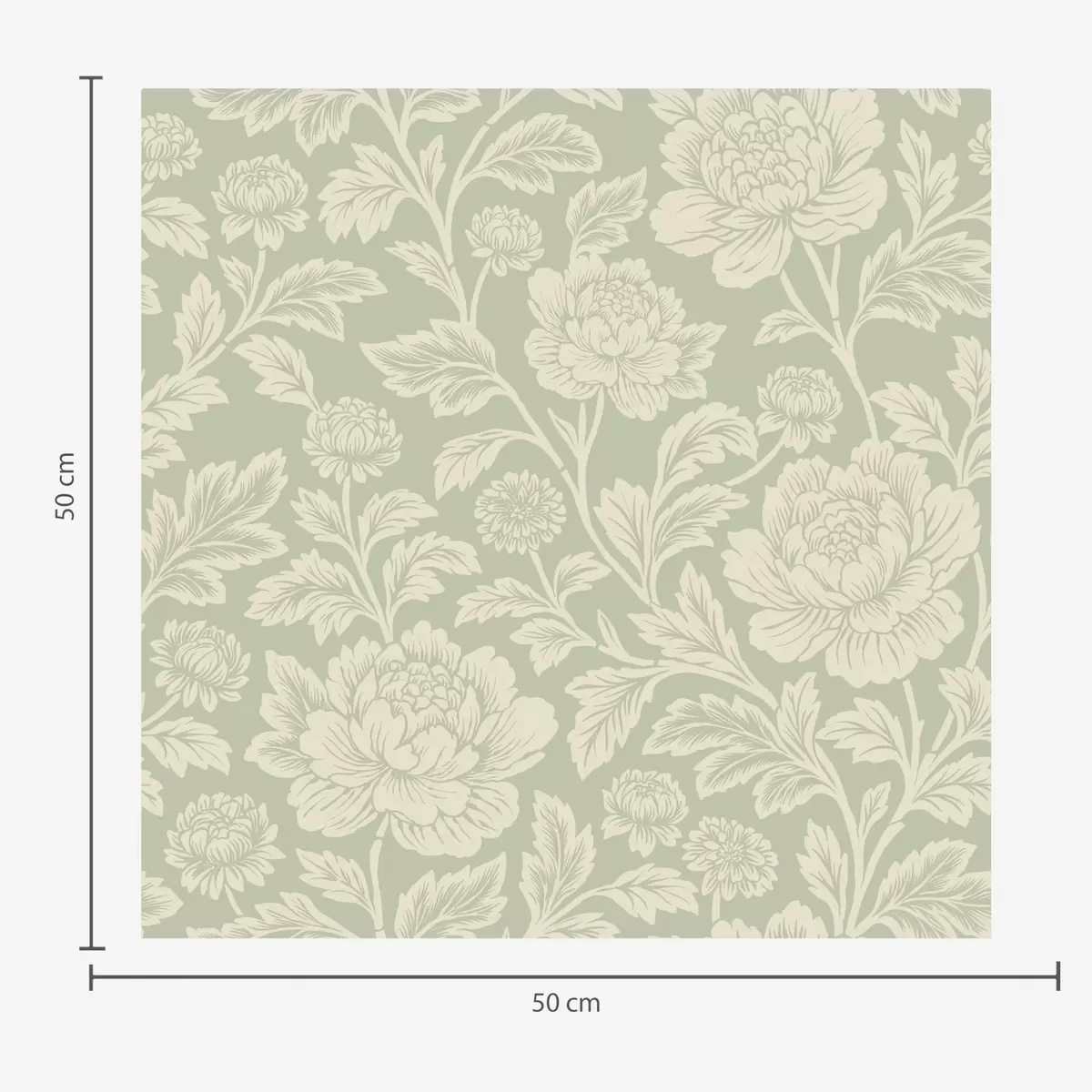 Tapet Stora linjetecknade pioner på en salviagrön bakgrund Nr. a00582