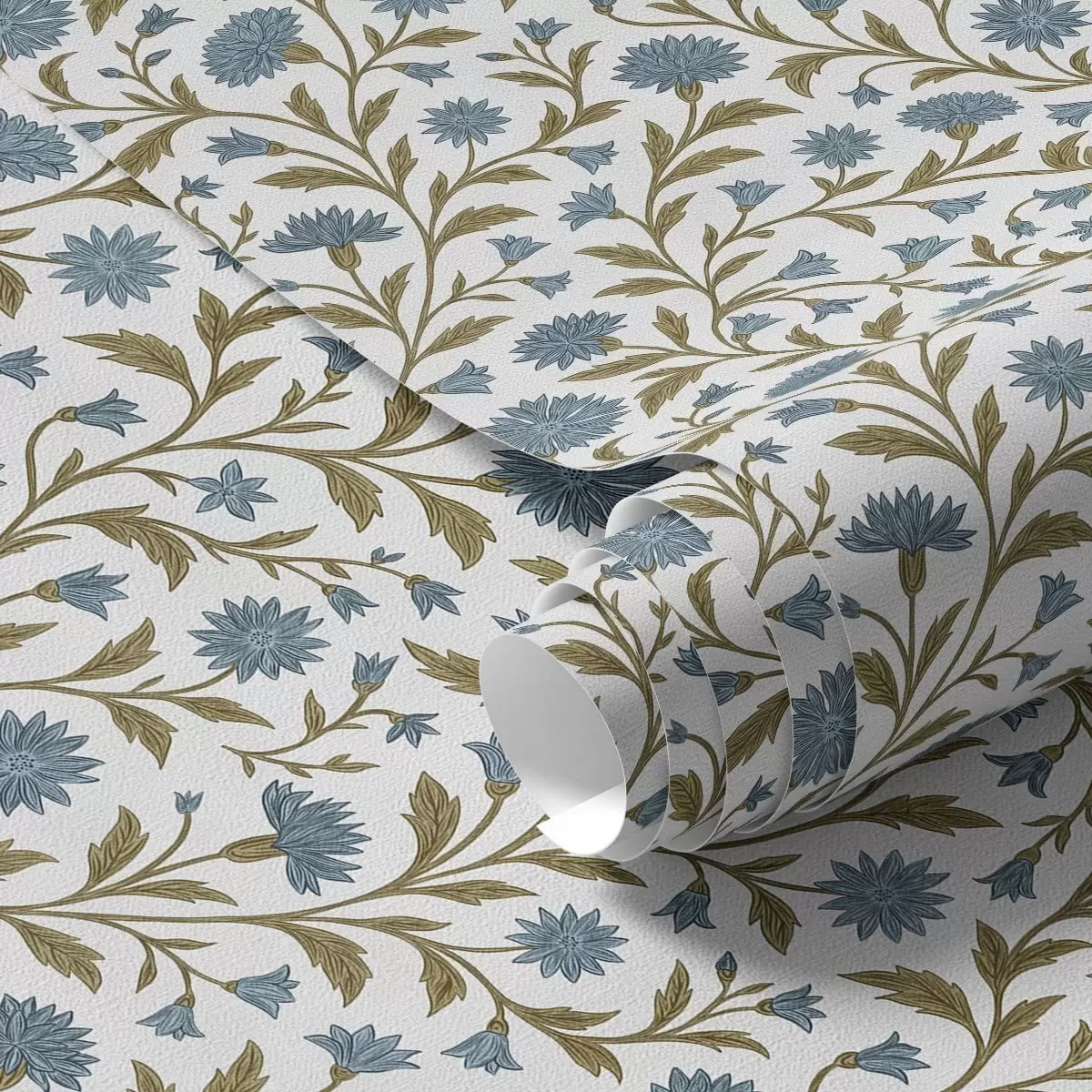 Tapet Blåklint och skott på vit bakgrund Nr. a00588v1