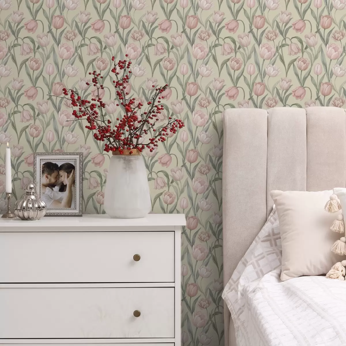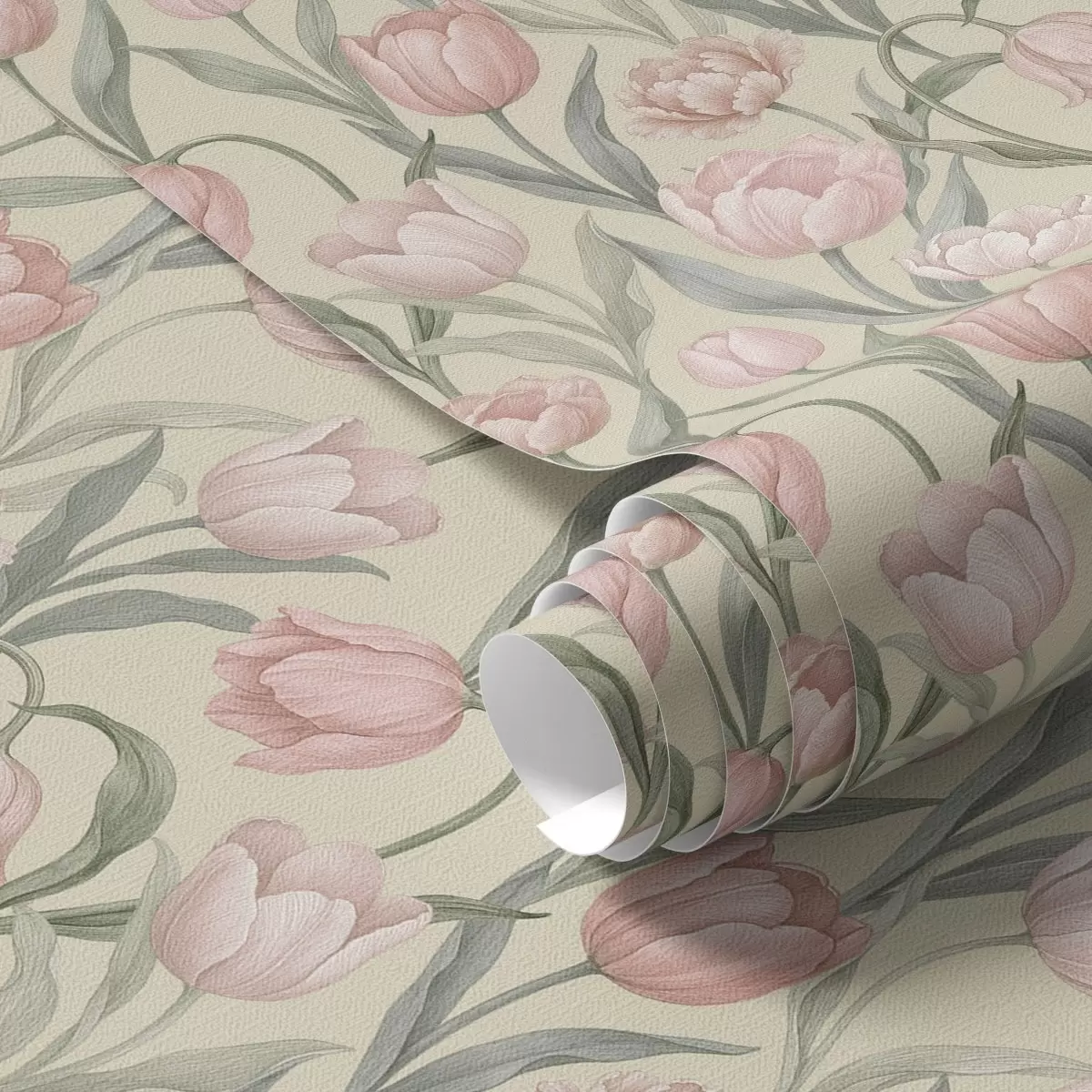 Tapet Mjukrosa tulpaner på en mild beige bakgrund Nr. a00589