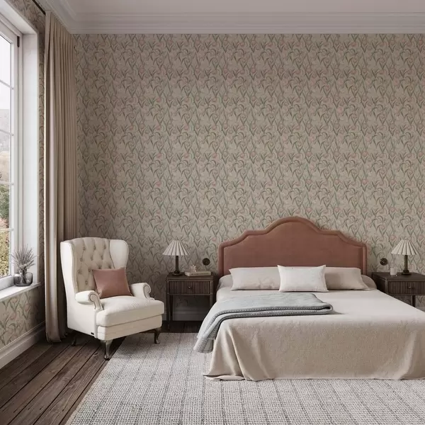 Tapet Mjukrosa tulpaner på en mild beige bakgrund Nr. a00589