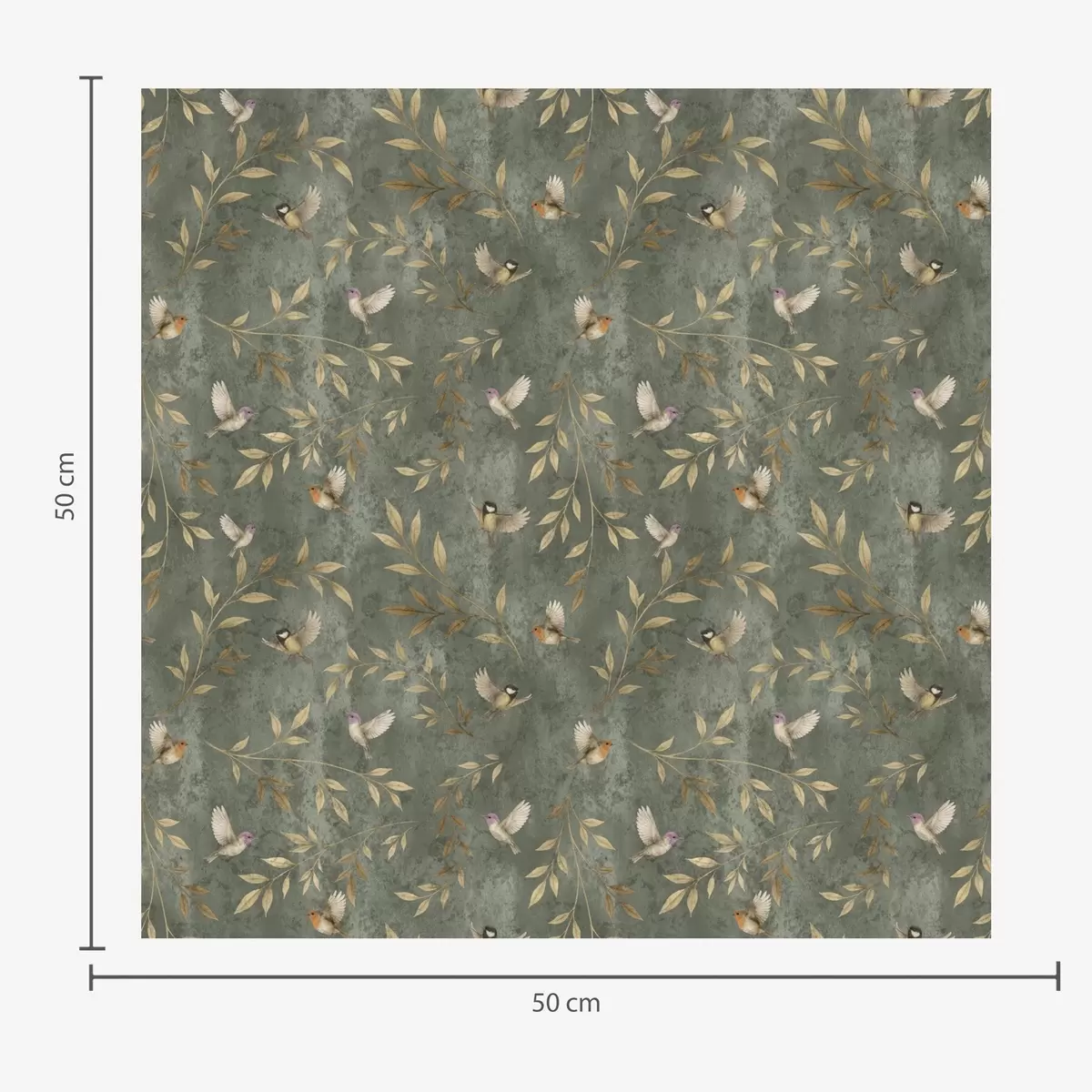 Tapet Fåglar i orange lövverk på en djupgrön bakgrund Nr. a00591