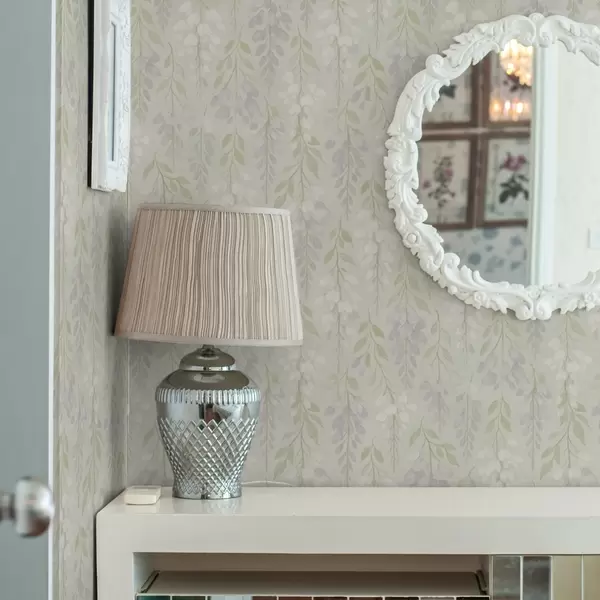 Tapet Hängande lavendelblå blåregn på mintgrön bakgrund Nr. a00593