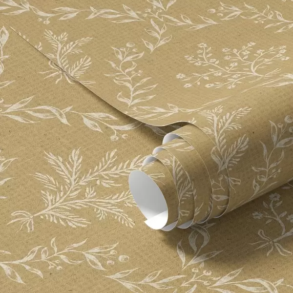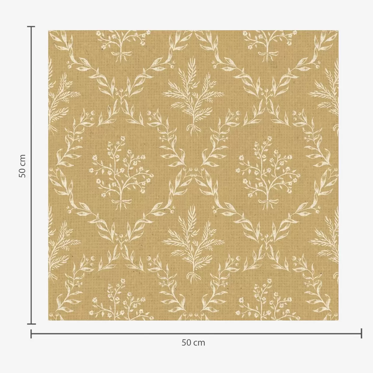 Tapet Vita kransar av örter och blommor på senapsgul bakgrund Nr. a00599
