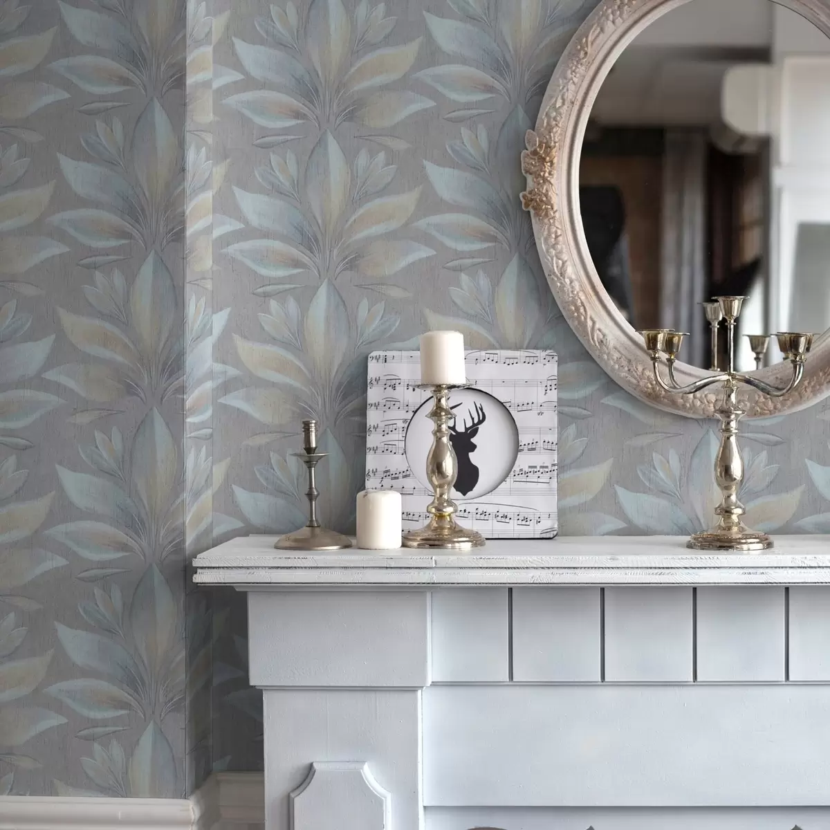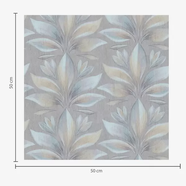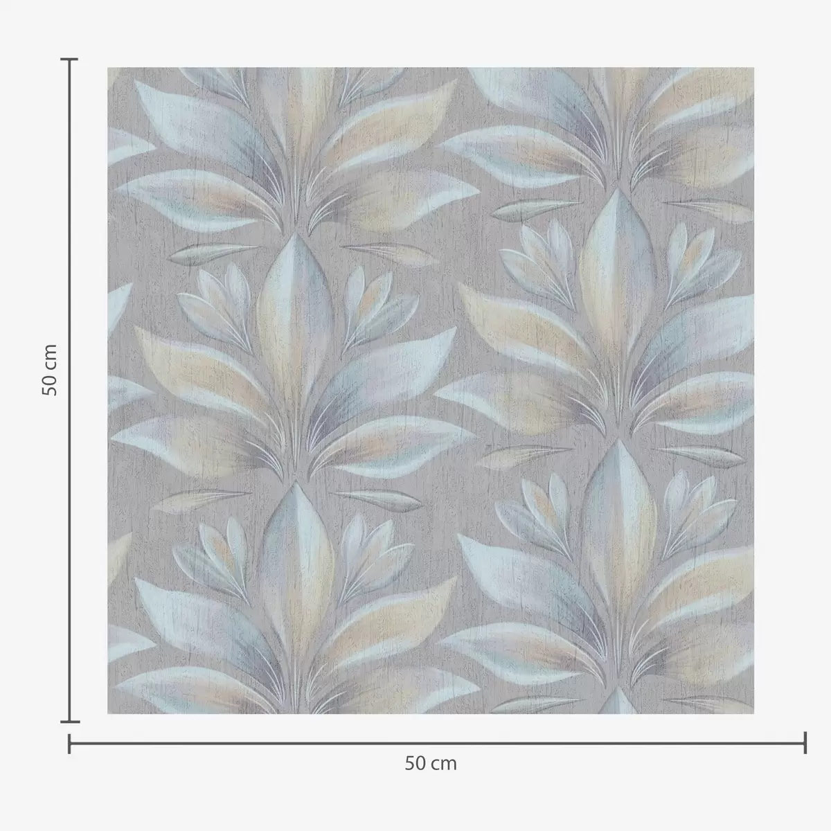 Tapet Stora stiliserade blad i en blå-sandfärgad palett på grått Nr. a00601