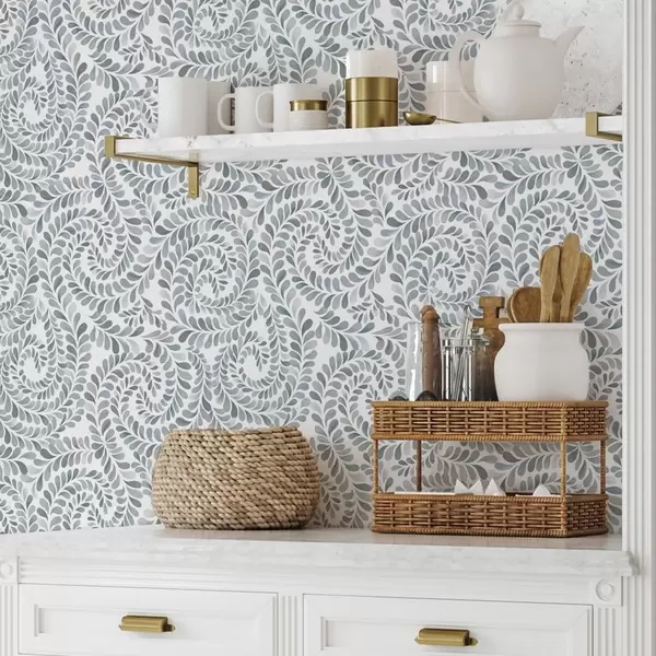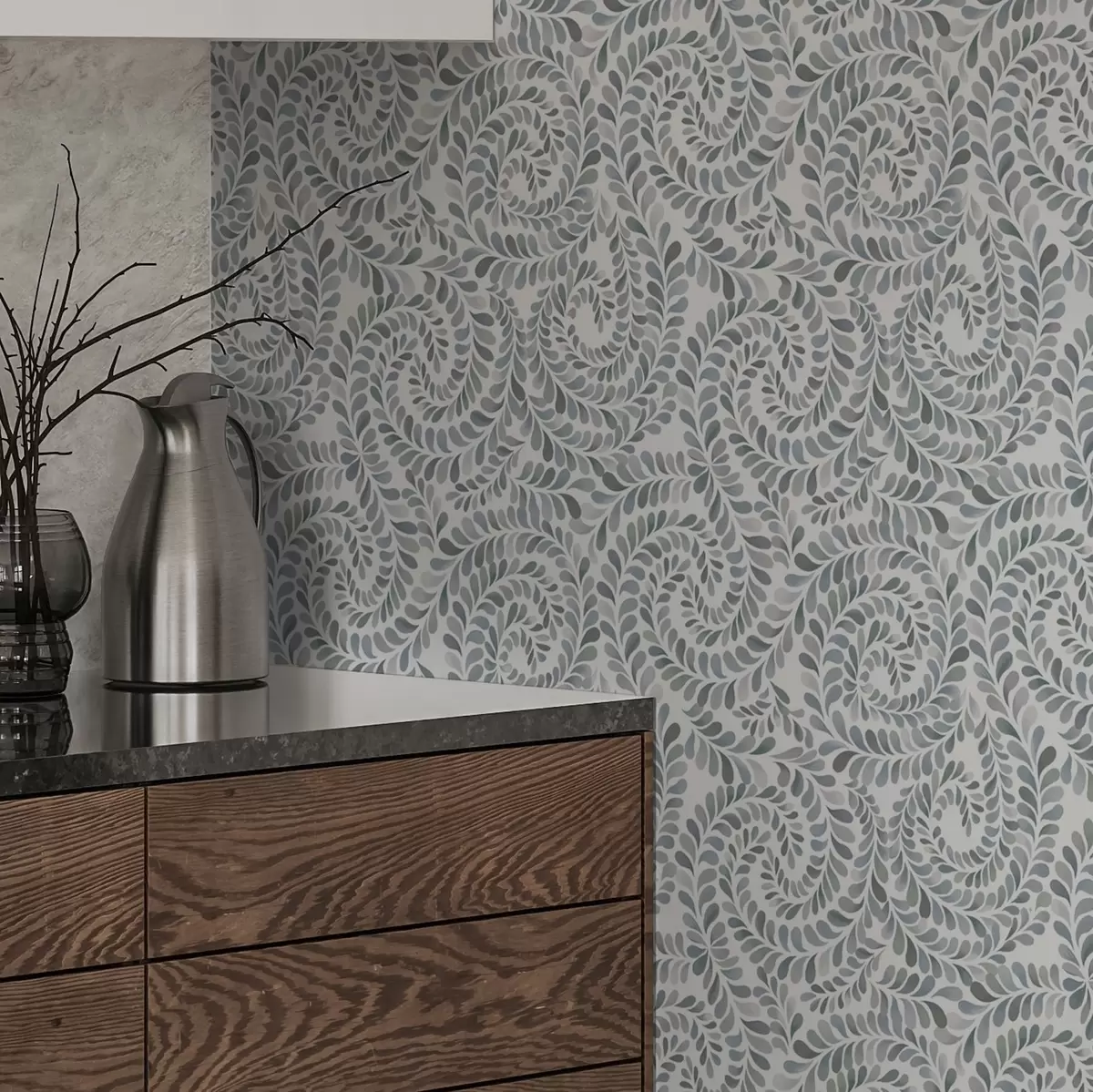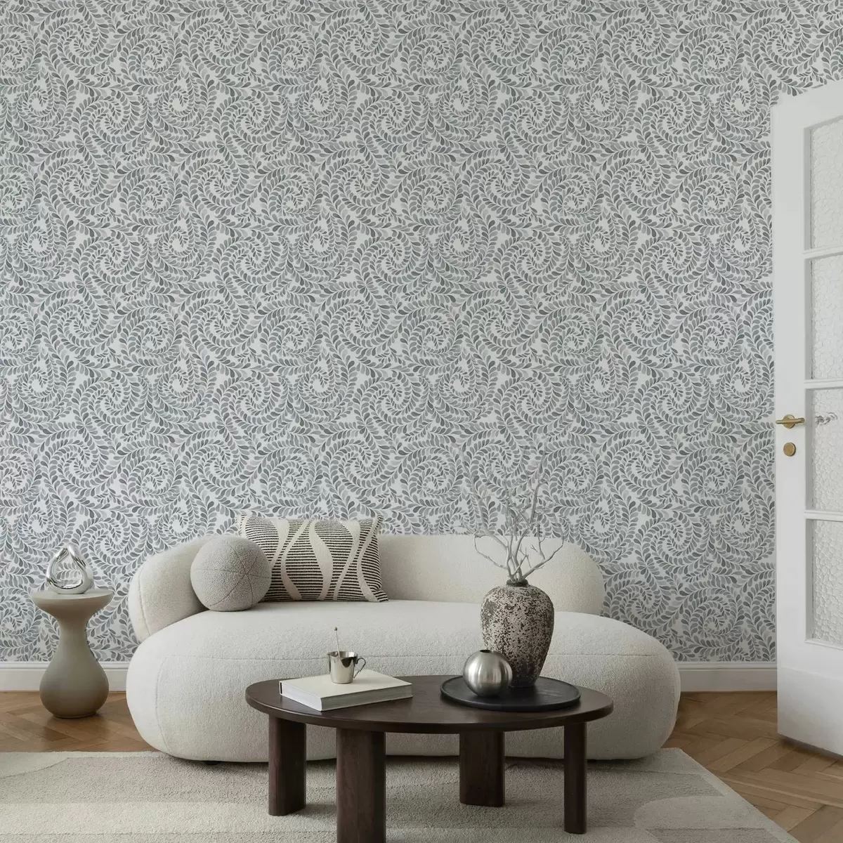 Tapet Bladiga spiraler i svala gråblå toner Nr. a00602v1