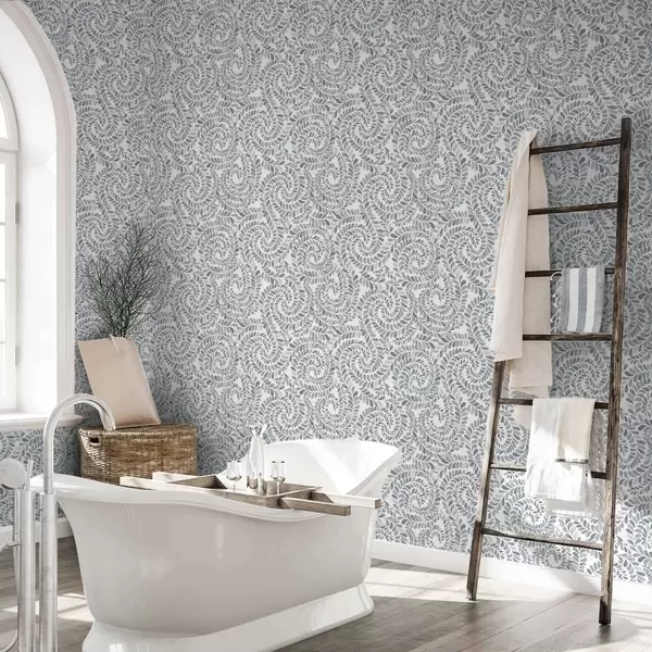Tapet Bladiga spiraler i svala gråblå toner Nr. a00602v1
