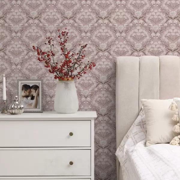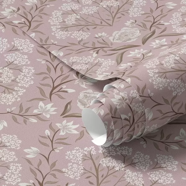 Tapet Rosa damast: pioner, snödroppar och spetsiga kluster Nr. a00603