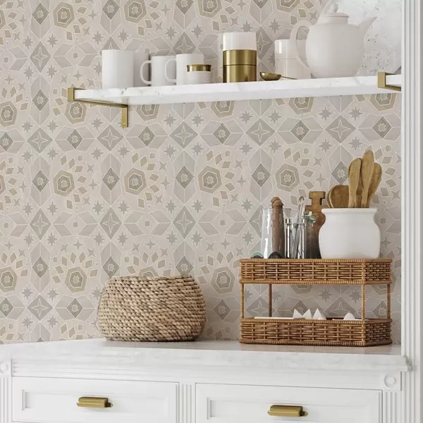 Tapet Geometriskt mosaikmönster i varma beige nyanser Nr. a00606