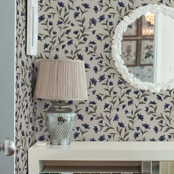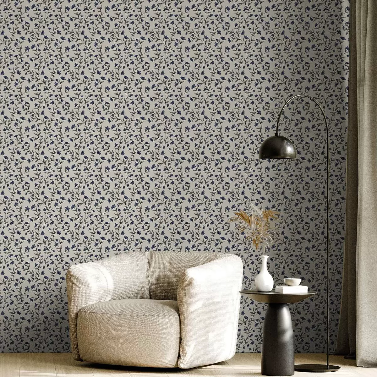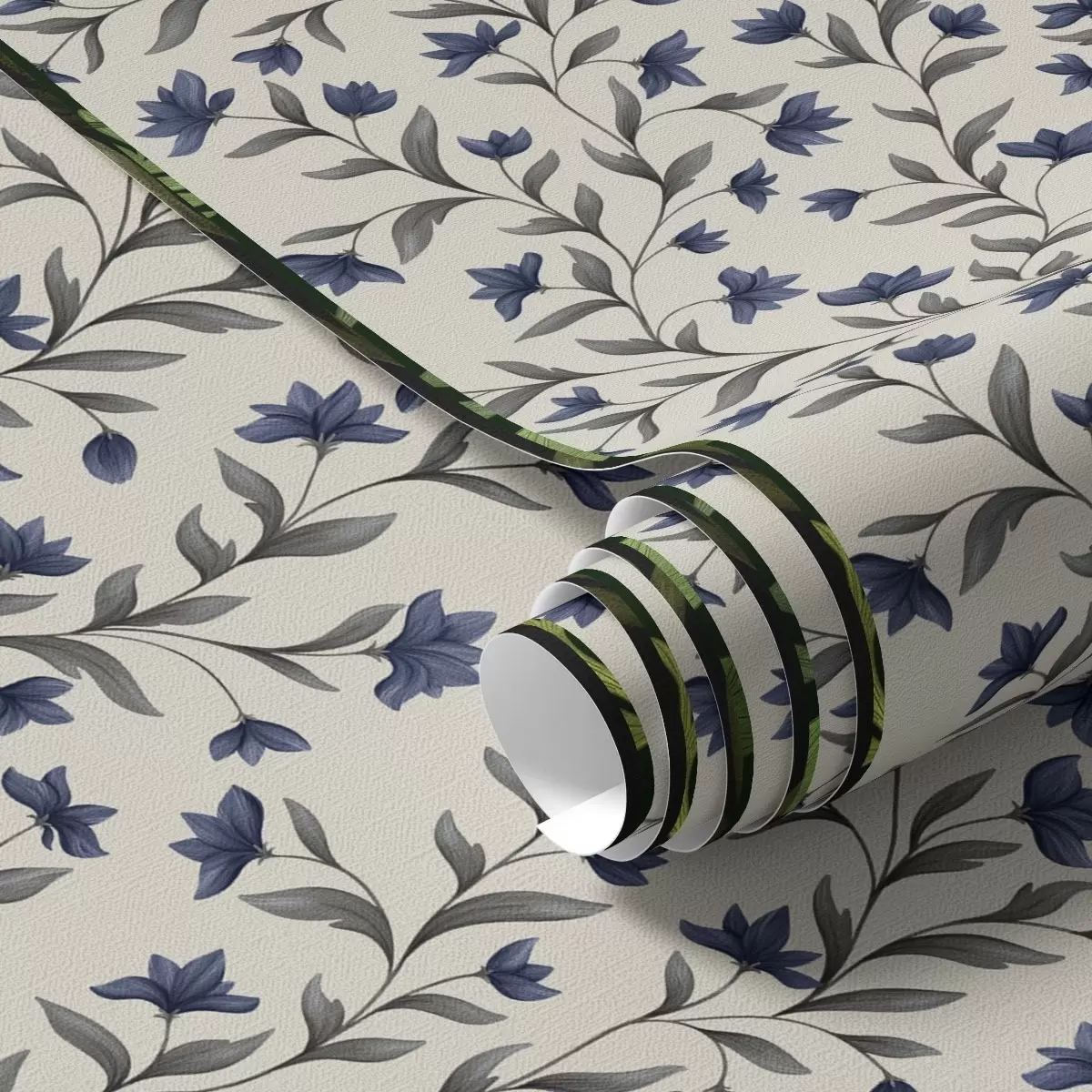 Tapet Blåklockor och grågrönt på ljus bakgrund Nr. a00622v1