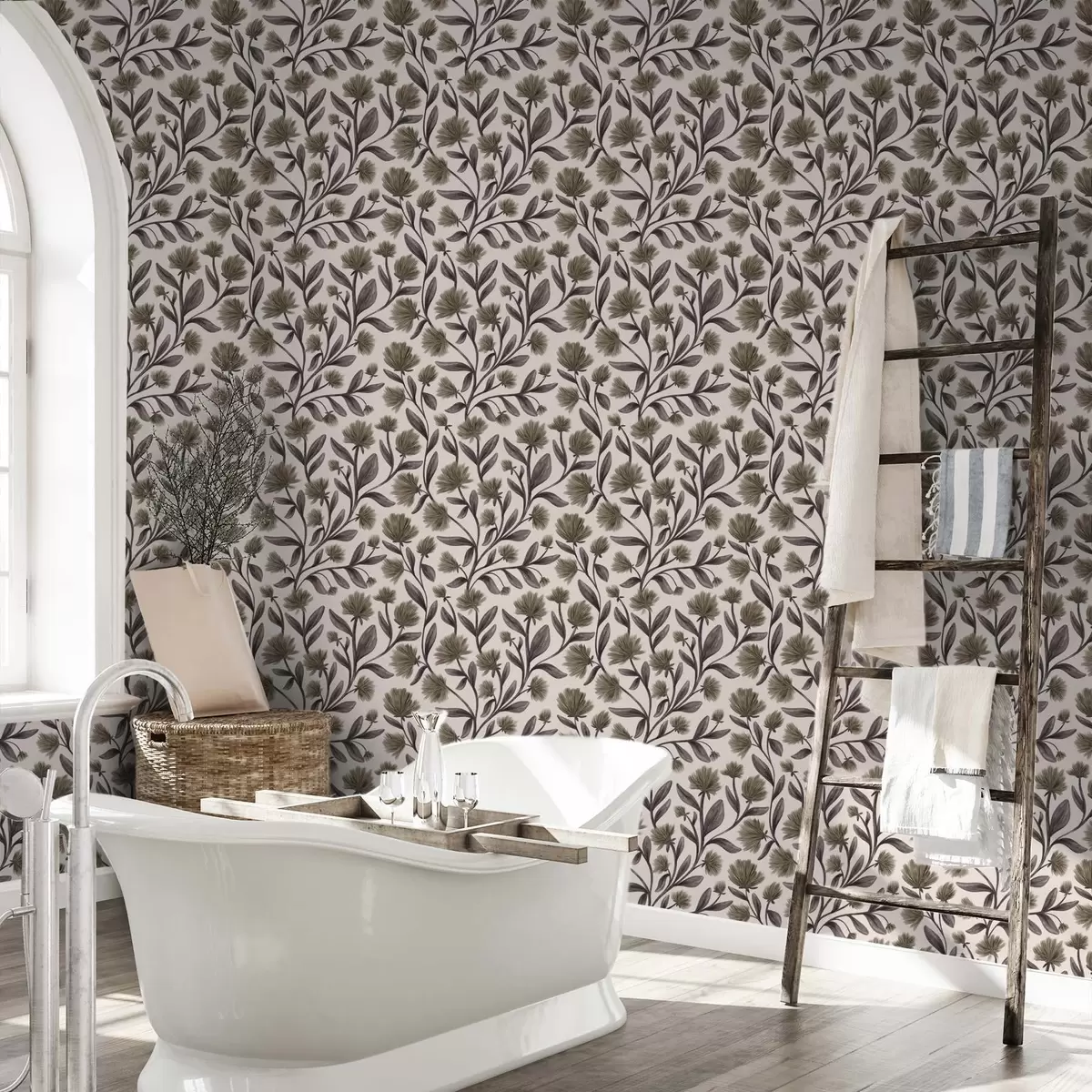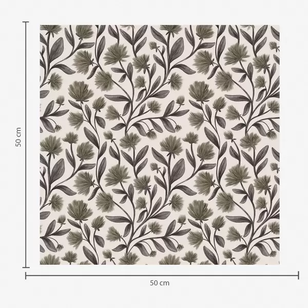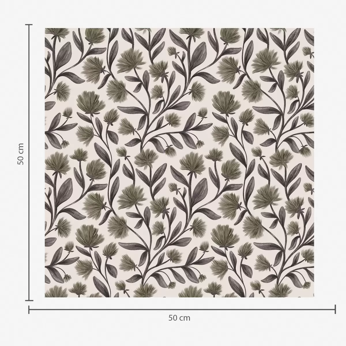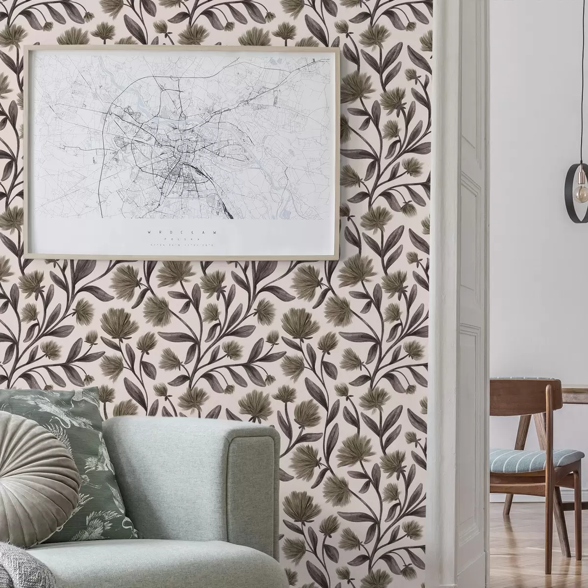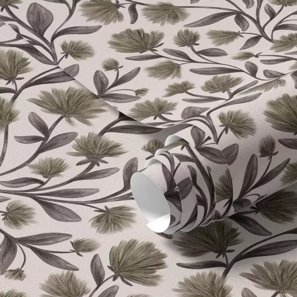 Tapet Vildblommor i grå-olivtoner på en krämfärgad bakgrund Nr. a00623v1
