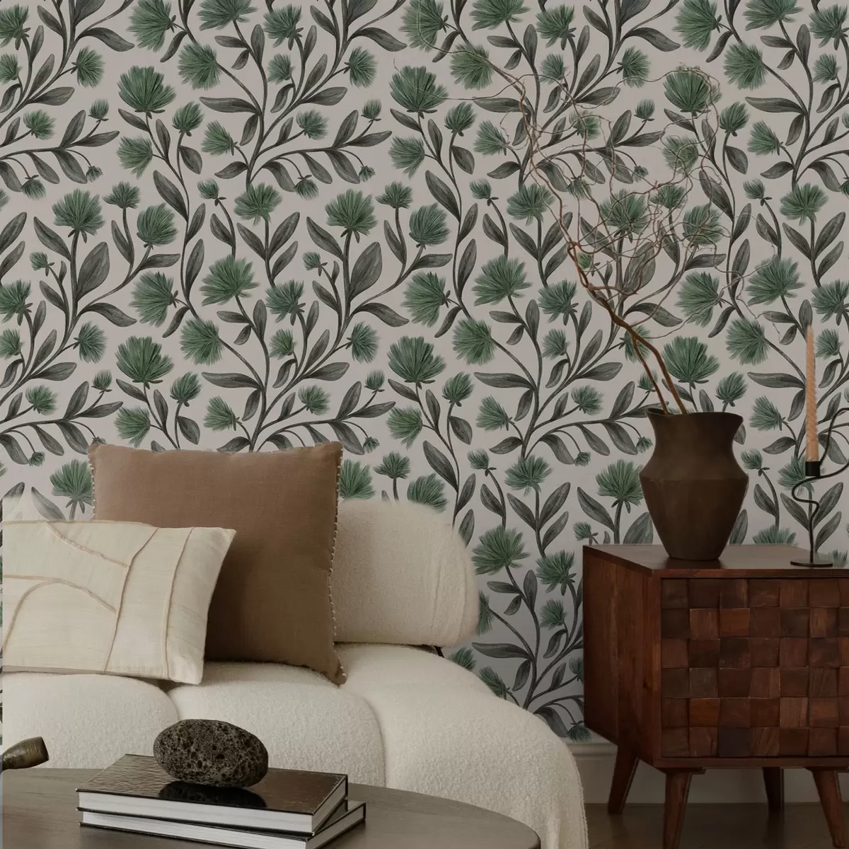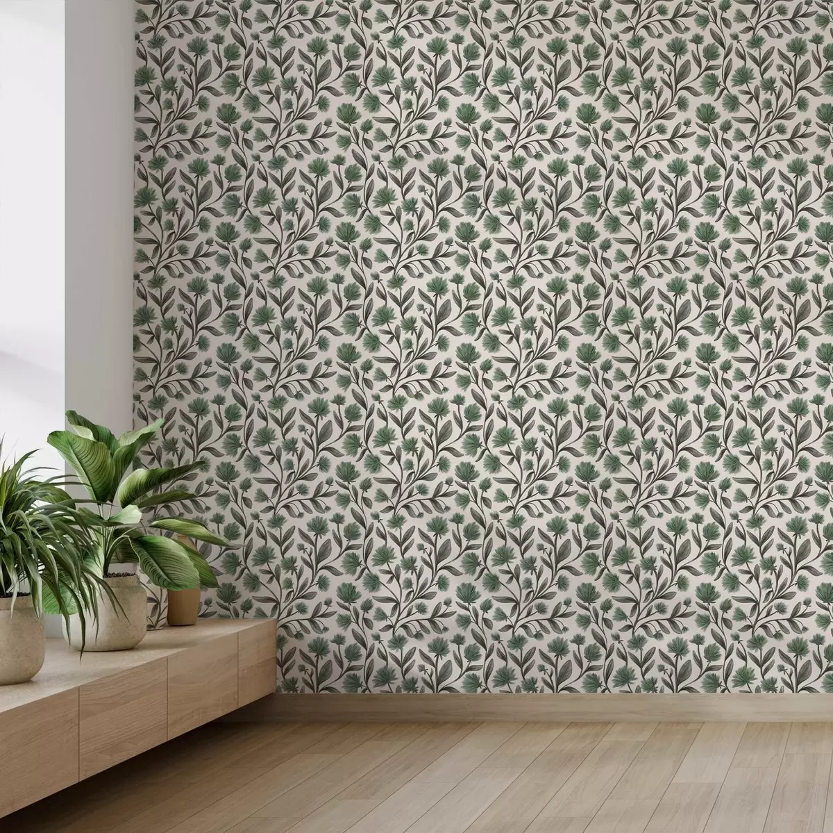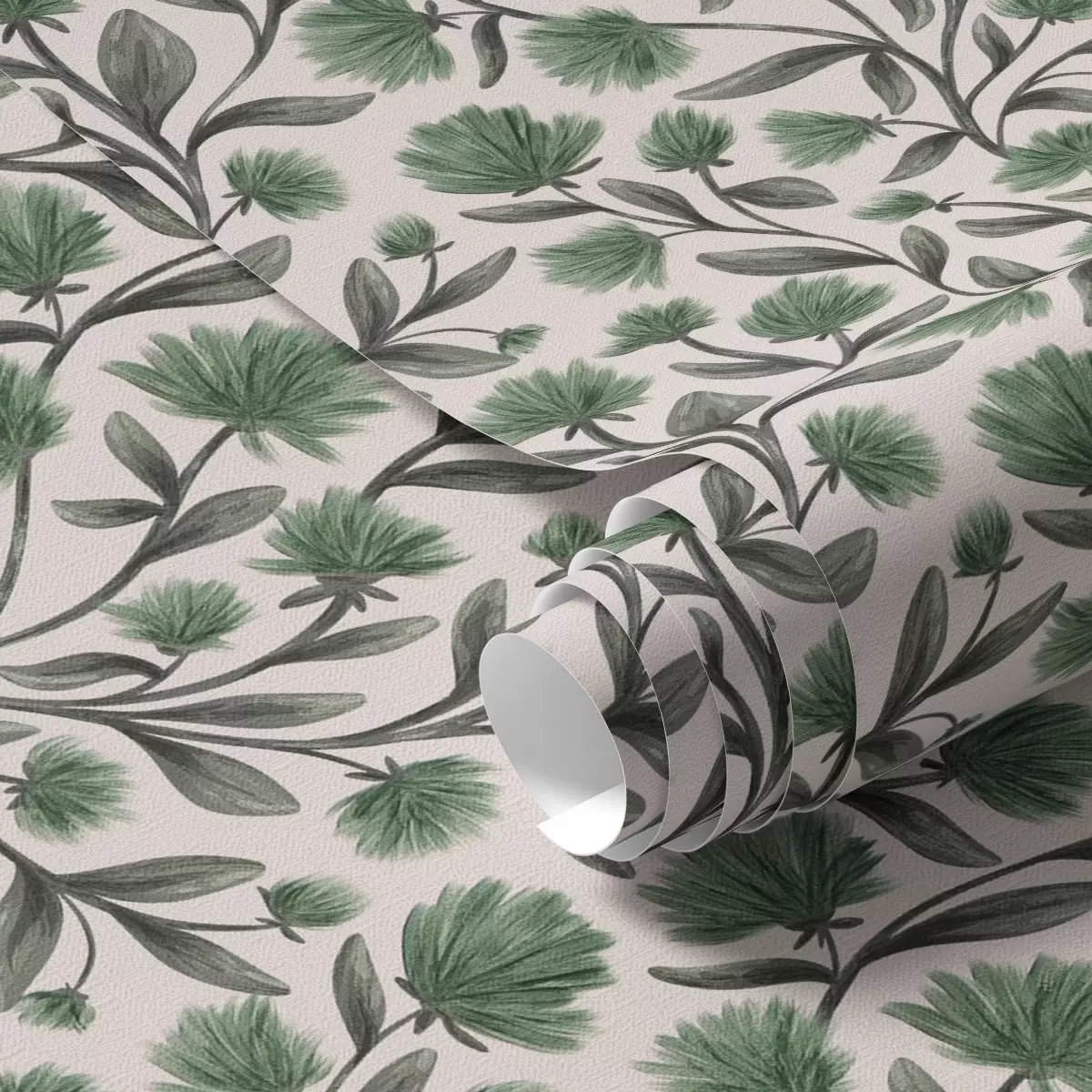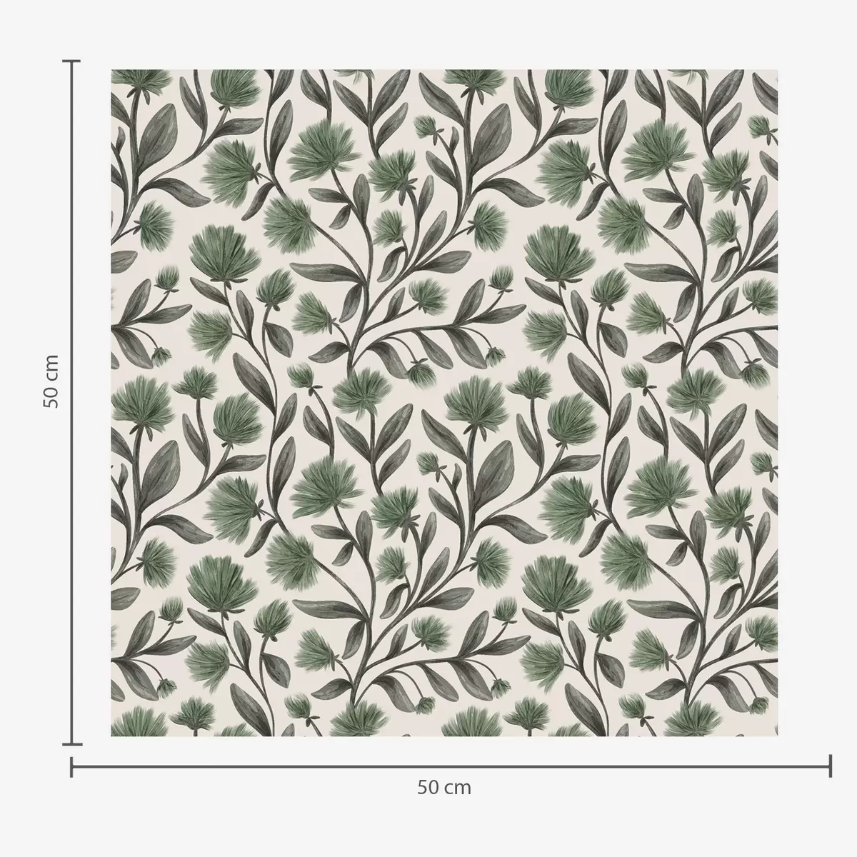 Tapet Vildblommor i gröna nyanser på krämfärgad bakgrund Nr. a00623v3