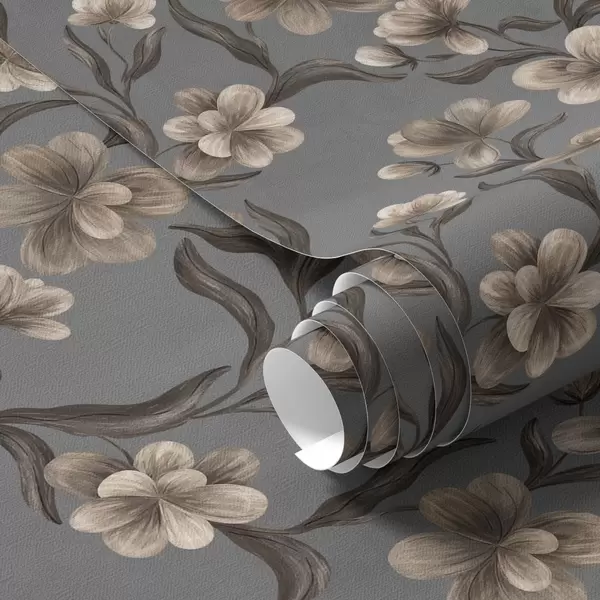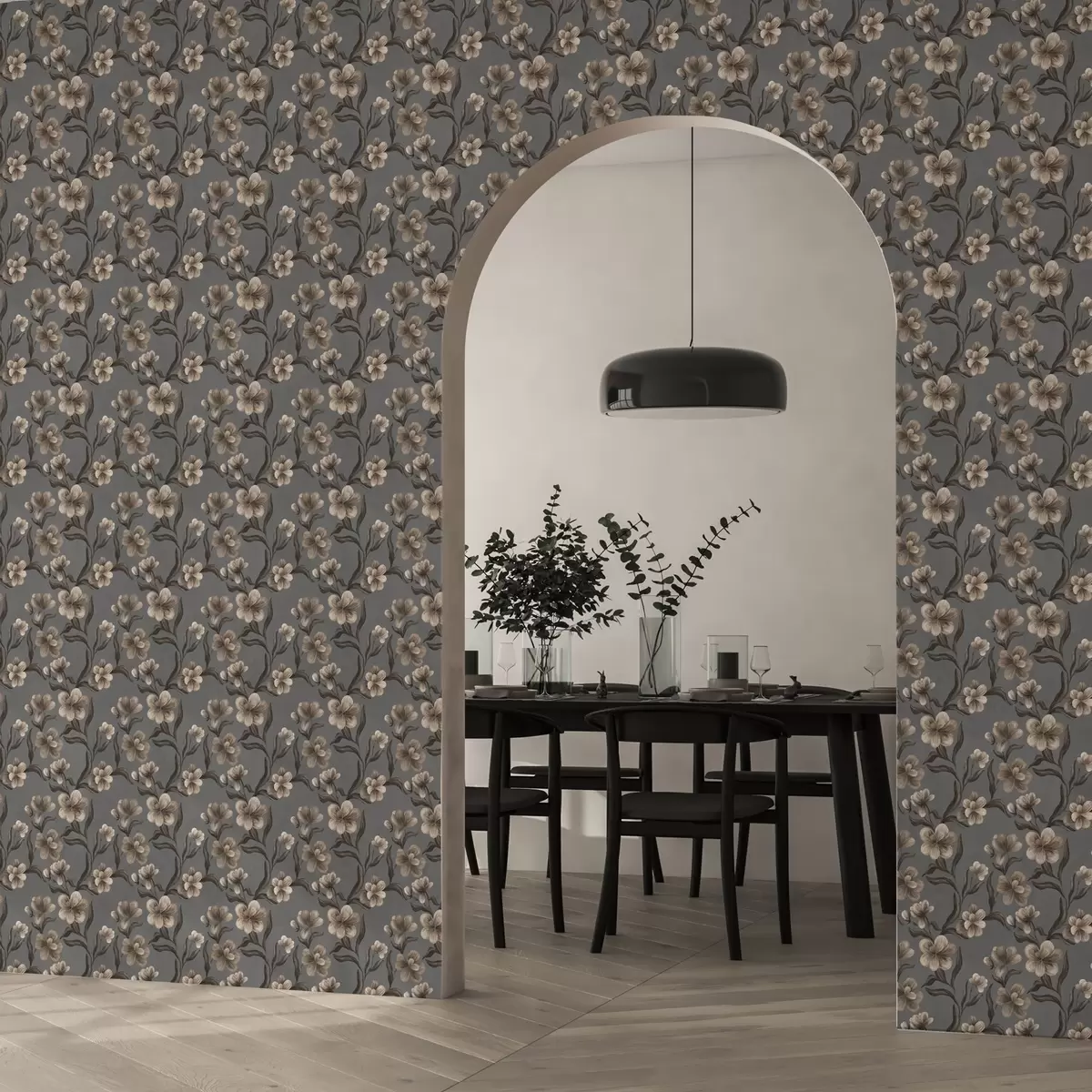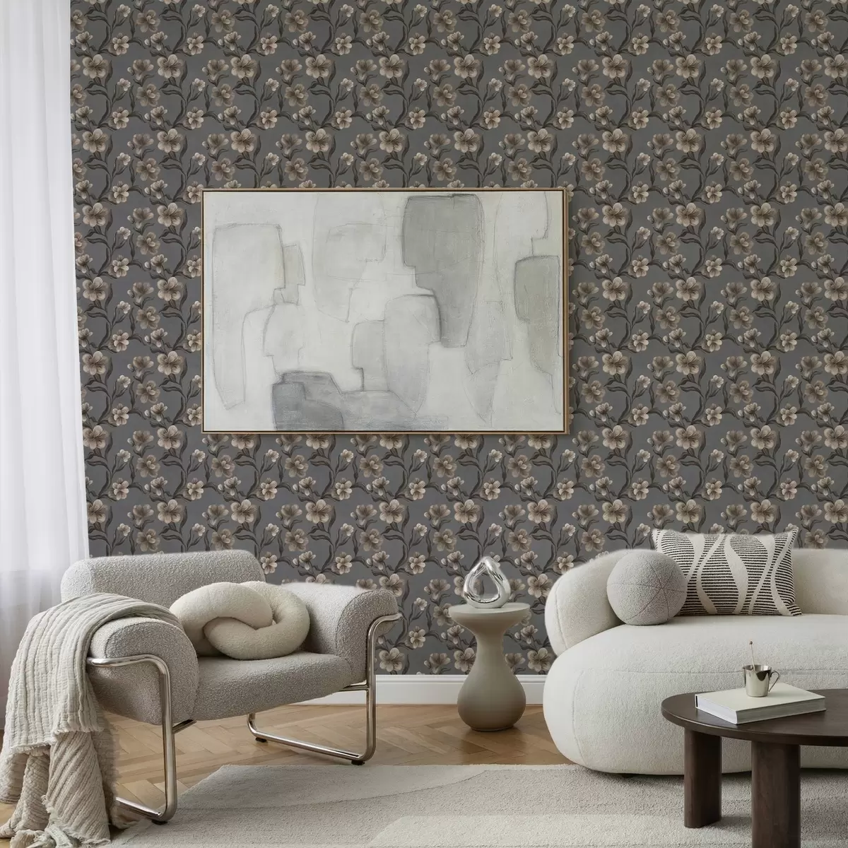 Tapet Beige blommor på en grafitgrå bakgrund Nr. a00626v4