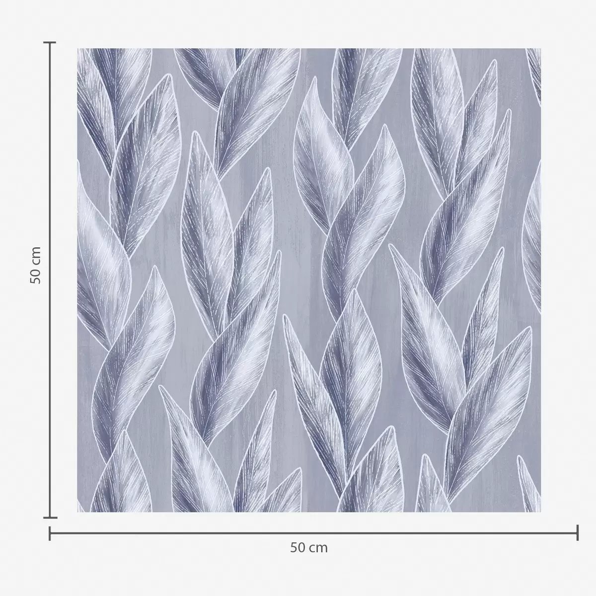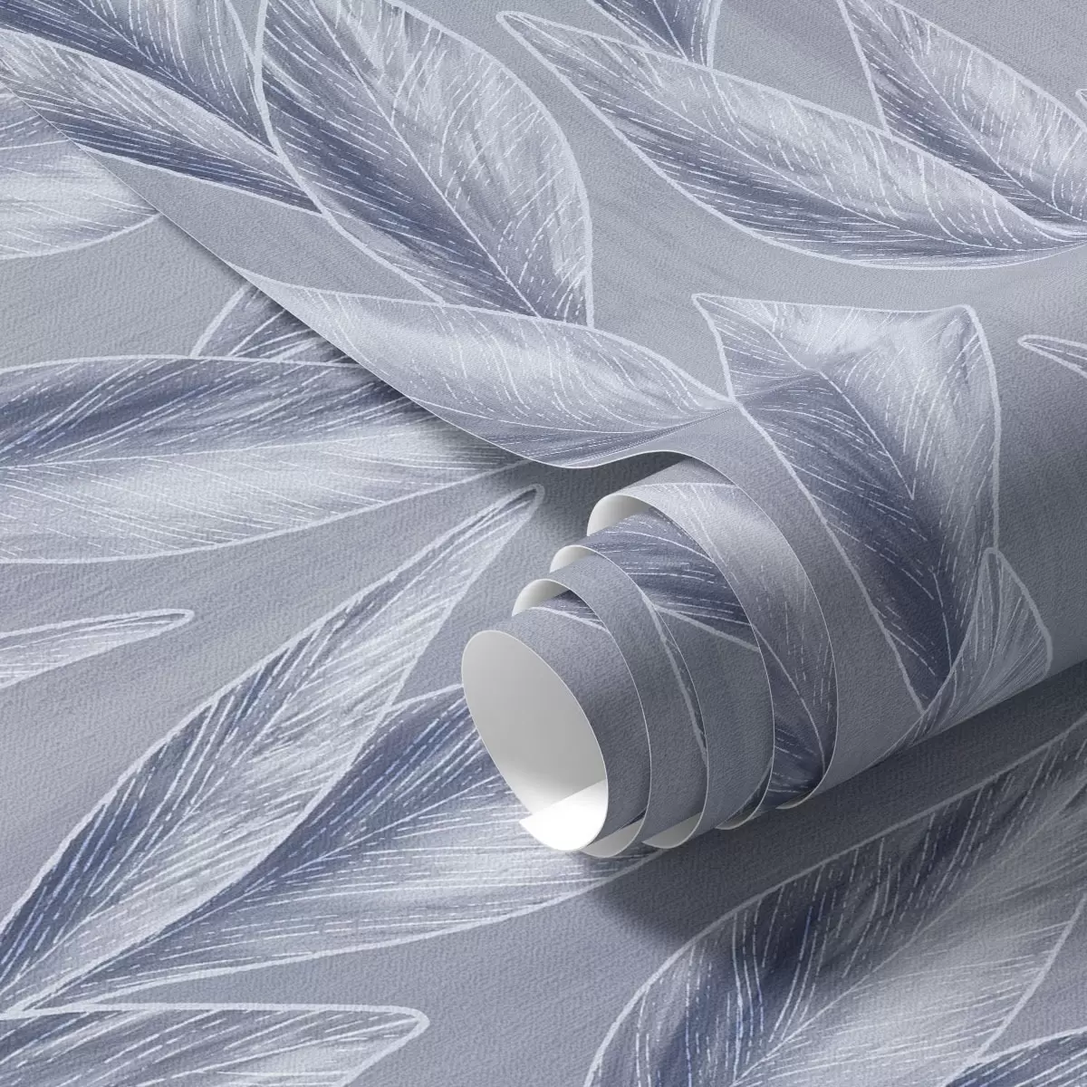 Tapet Silverblå blad på gråblå bakgrund, grafiskt mönster Nr. a00627