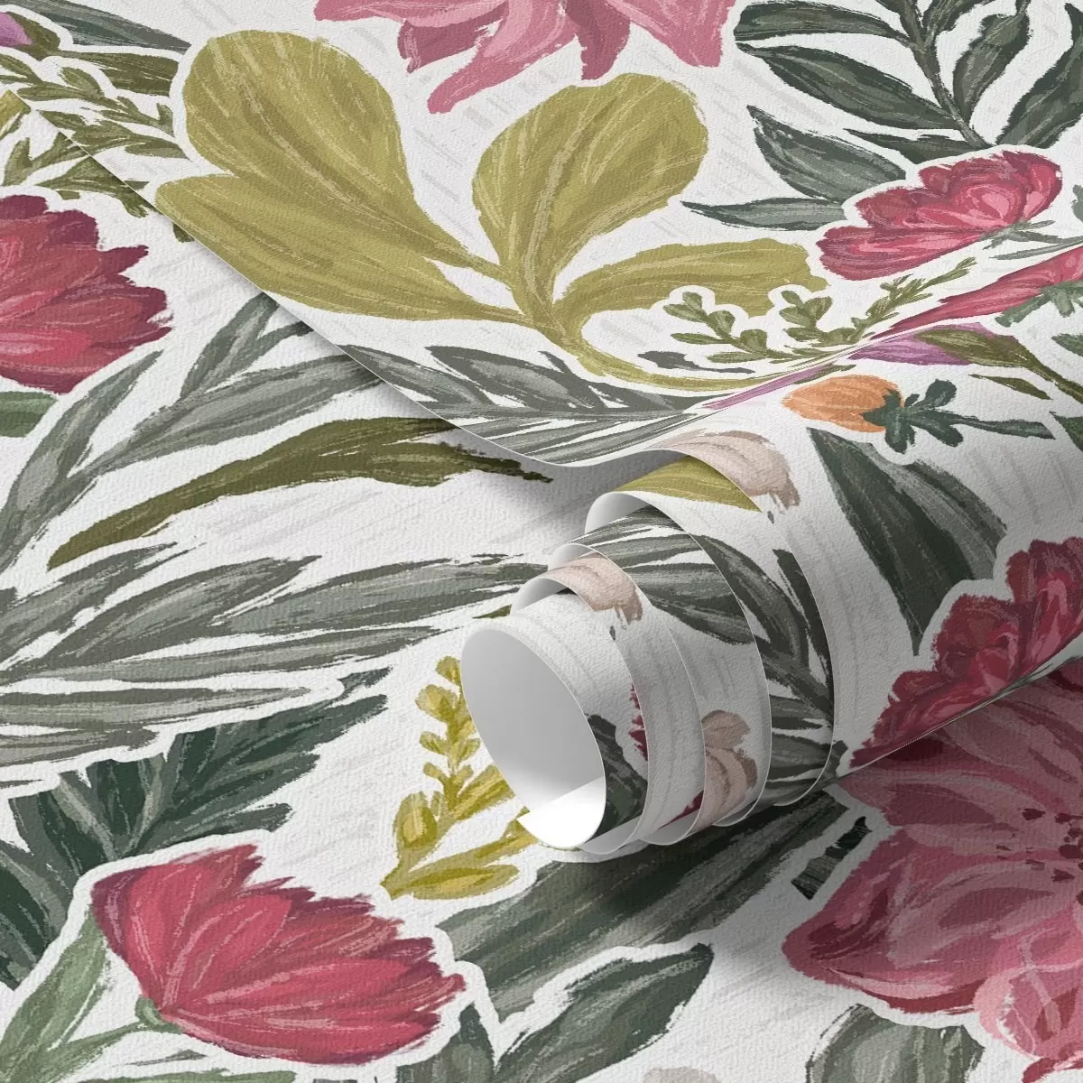 Tapet Frodiga rosa och krämfärgade blommor på vit bakgrund, impastotekstur Nr. a00629v1