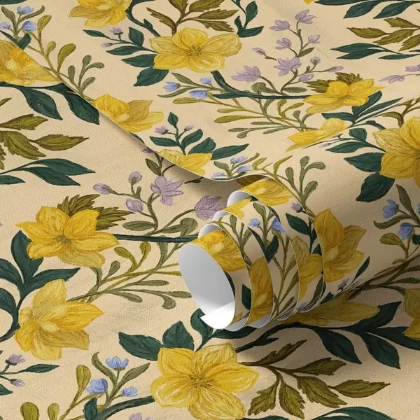 Tapet Gula blommor i vertikala girlander på en krämfärgad bakgrund Nr. a00632