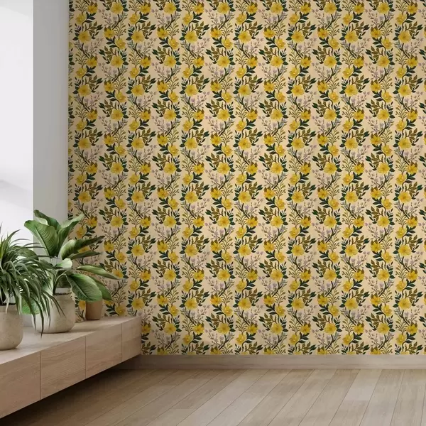 Tapet Gula blommor i vertikala girlander på en krämfärgad bakgrund Nr. a00632