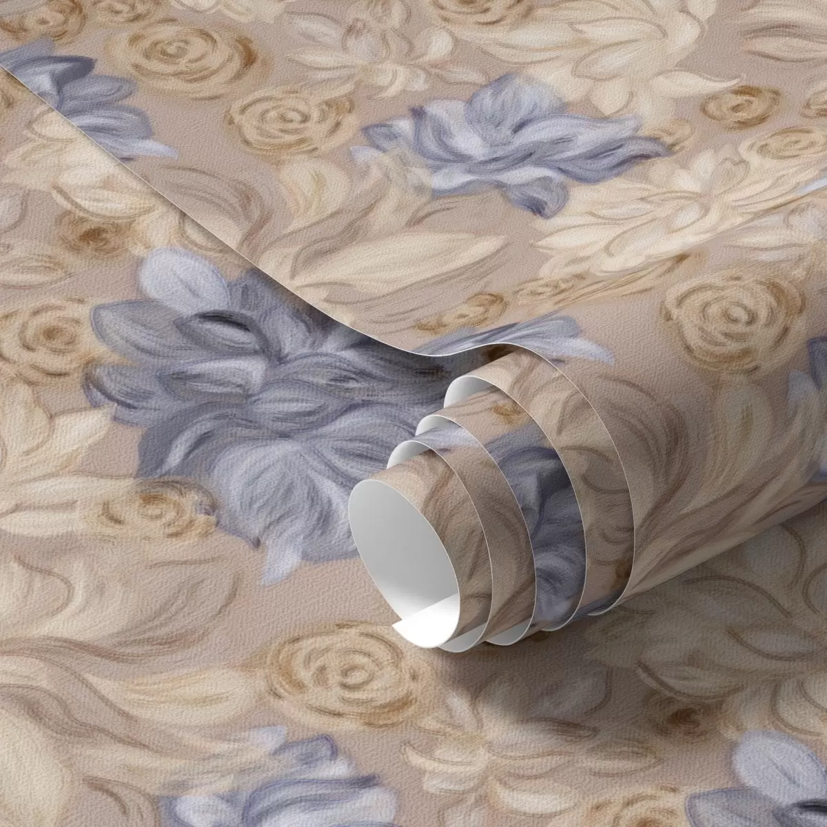 Tapet Frodig grädde och blå blommor i pastellfärger Nr. a00634