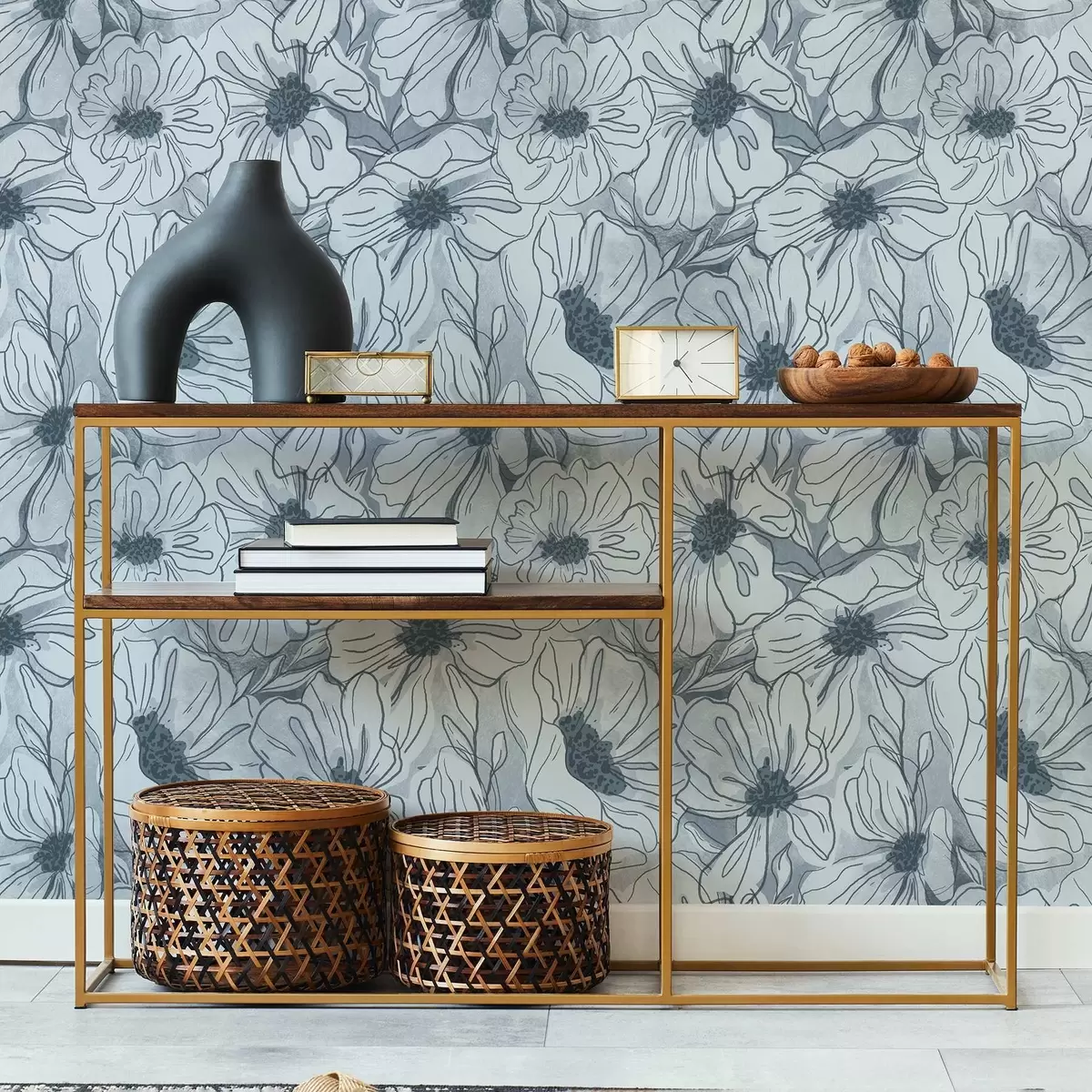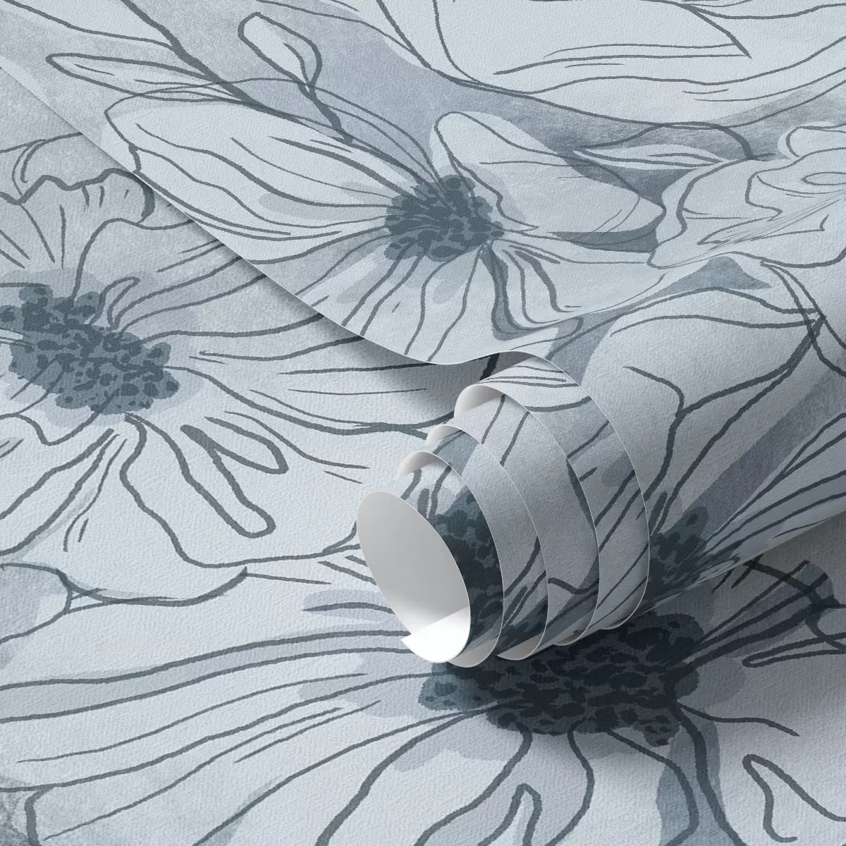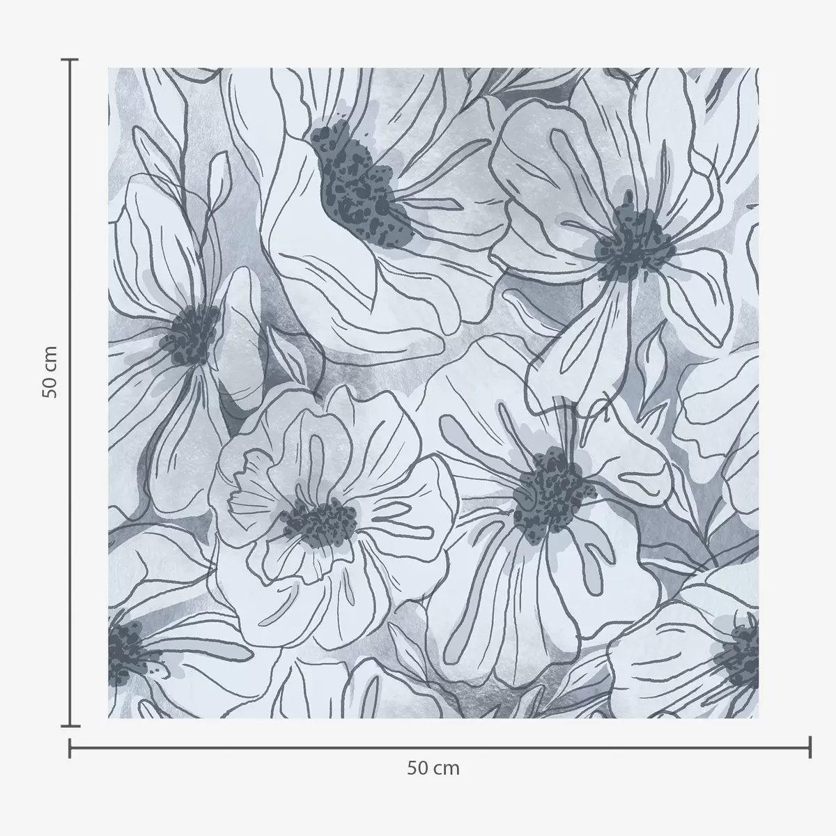 Tapet Linjära blommor i en sval gråblå färgskala Nr. a00636v2