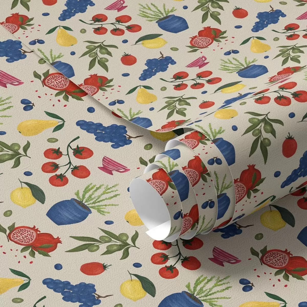 Tapet Livfullt mönster med frukter, grenar och vaser Nr. a00637