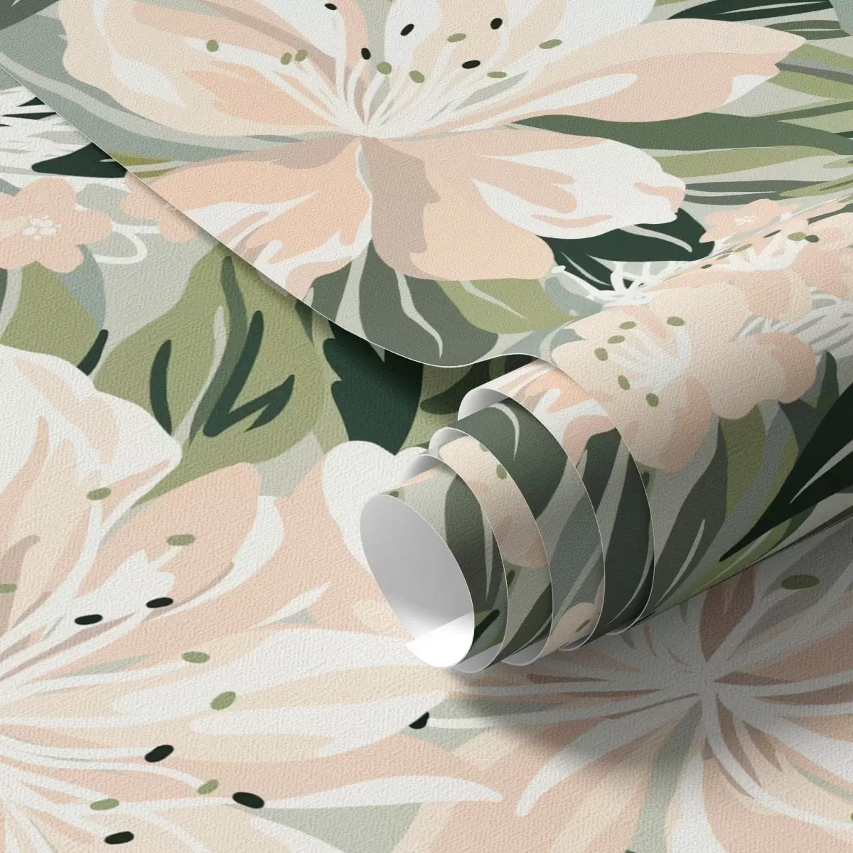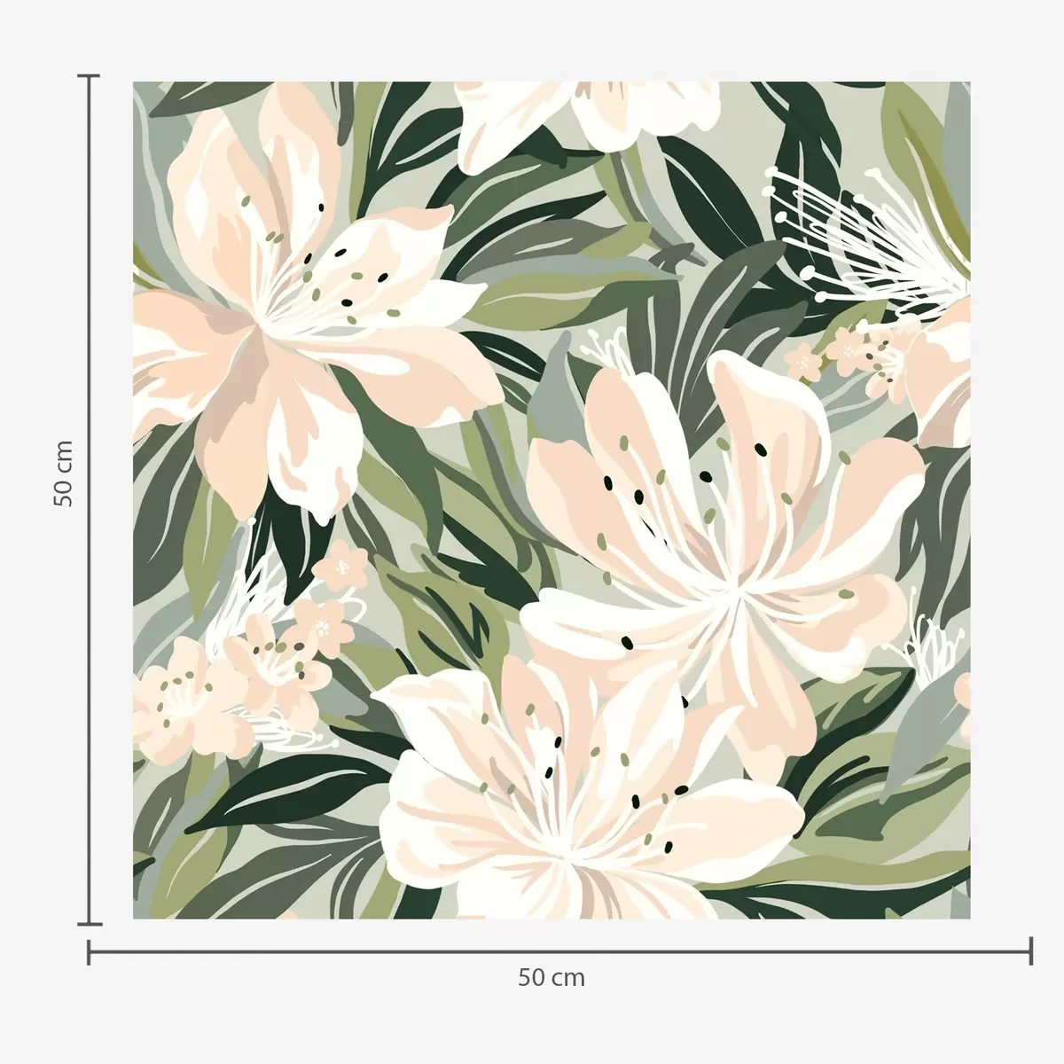 Tapet Stora krämfärgade blommor på ljusgrön bakgrund Nr. a00646