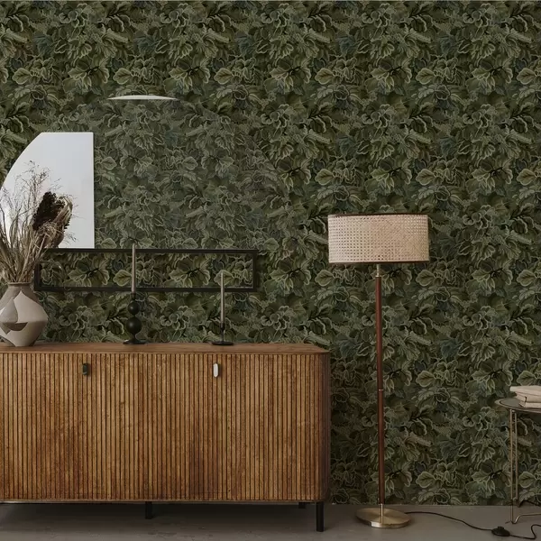 Tapet Täta vindruvsblad i en djupgrön färgskala Nr. a00647