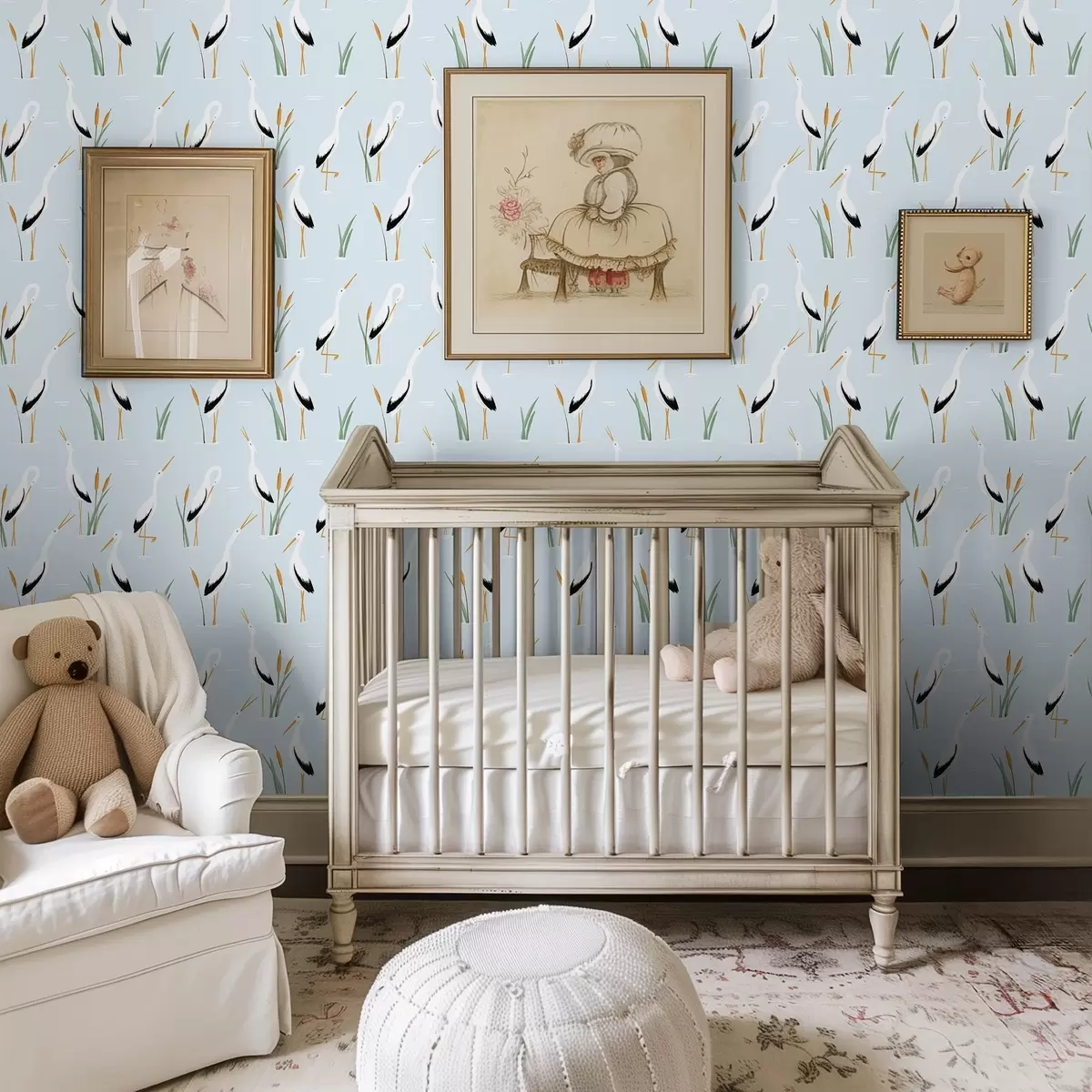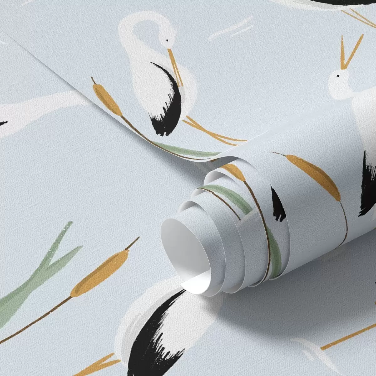Tapet Hägrar bland vass på en mild blå bakgrund Nr. a00650v3